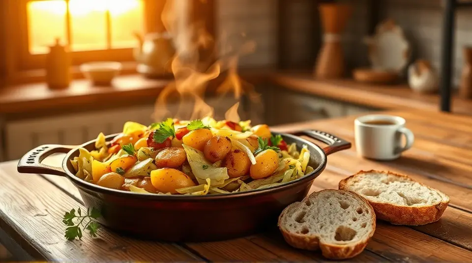 This warm and hearty recipe is a simple yet flavorful dish that's perfect for a cozy dinner or as a side to your favorite protein. The combination of tender potatoes and caramelized cabbage creates a comforting meal that's both satisfying and nutritious. Feel free to experiment with spices or add in your favorite protein to customize it to your taste!