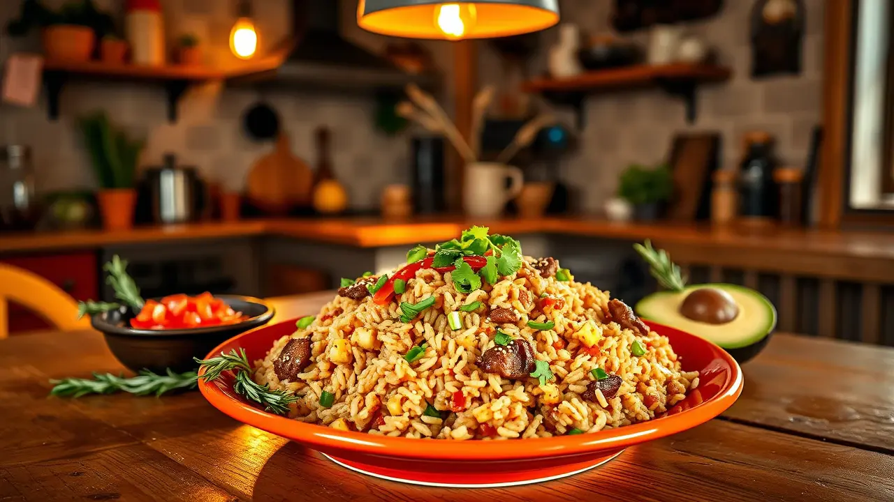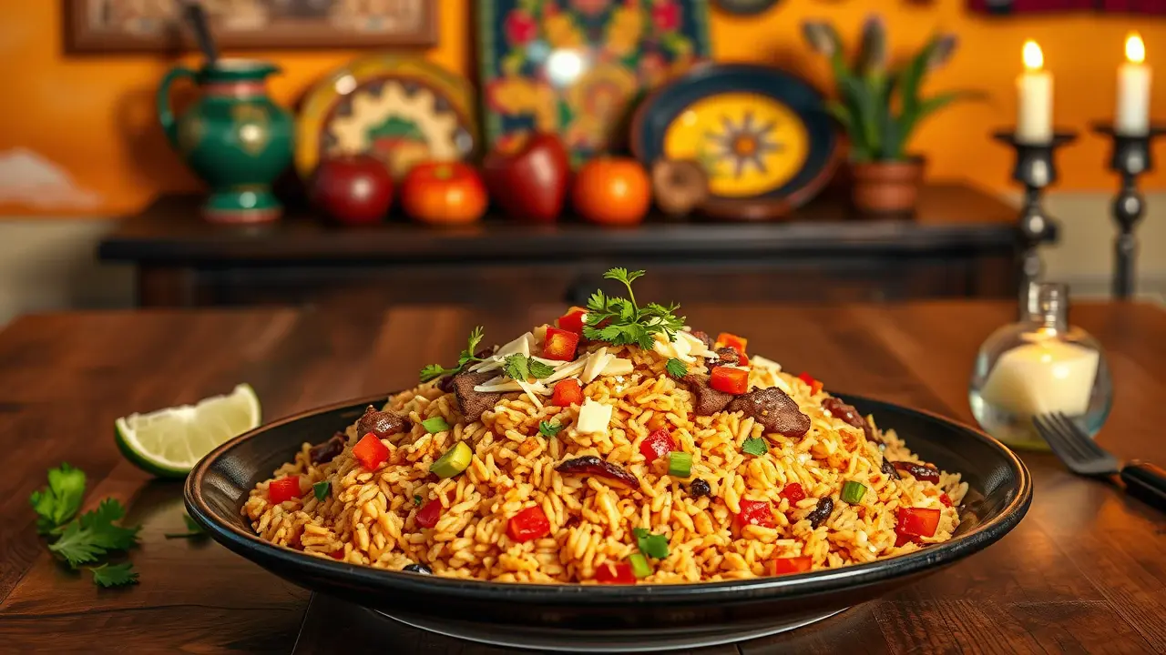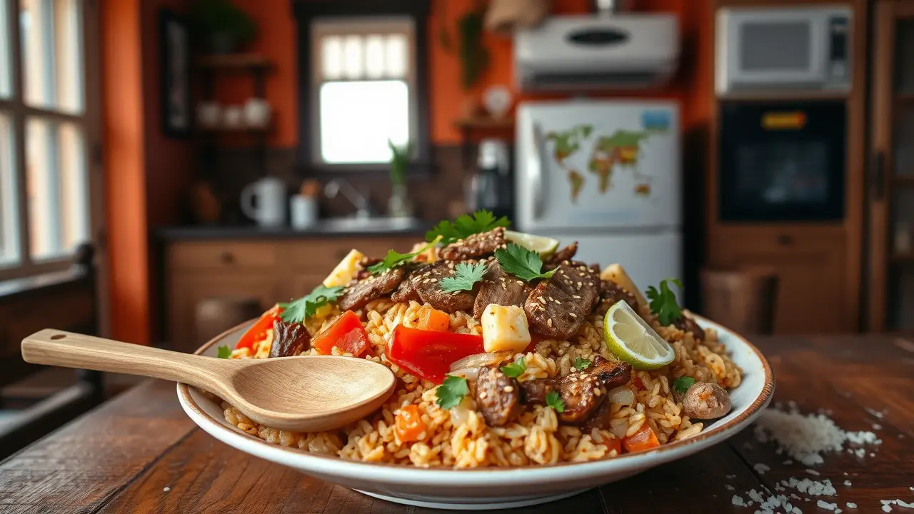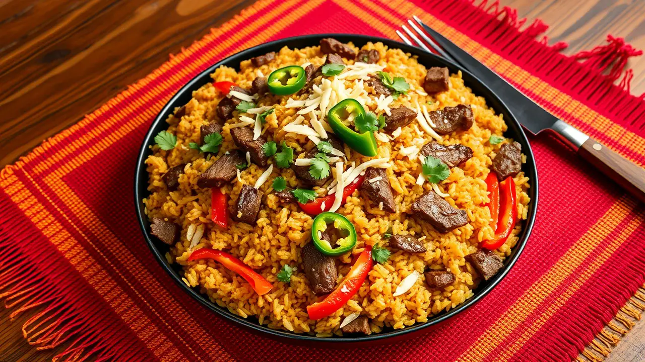 # Sizzling Steak Fajita Fried Rice 🌶️🥩 This dish is a delightful fusion of bold flavors and textures that brings together the classic flavors of sizzling steak fajitas with the comfort of fried rice. Quick to prepare and perfect for a weeknight meal, it promises to tantalize your taste buds with every bite! Whether you're feeding a crowd or enjoying a cozy dinner at home, this recipe is sure to impress. ## Ingredients ### For the fried rice - 2 cups cooked jasmine rice (preferably day-old) - 1 lb flank steak, thinly sliced - 2 tablespoons vegetable oil - 1 red bell pepper, sliced - 1 green bell pepper, sliced - 1 medium onion, sliced - 3 cloves garlic, minced - 2 eggs, lightly beaten - 3 tablespoons soy sauce - 1 tablespoon lime juice - Salt and pepper, to taste - Fresh cilantro, for garnish ### For the fajita seasoning - 1 teaspoon chili powder - 1 teaspoon cumin - 1/2 teaspoon paprika - 1/2 teaspoon garlic powder - 1/2 teaspoon onion powder - 1/4 teaspoon cayenne pepper (optional for heat) - Salt and black pepper, to taste ## Instructions - In a small bowl, combine the chili powder, cumin, paprika, garlic powder, onion powder, cayenne pepper, salt, and pepper, to create your fajita seasoning. > 🌶️ This seasoning blend adds a smoky, spicy kick that's the hallmark of any great fajita dish! - Season the thinly sliced flank steak with half of the fajita seasoning mix. - Heat 1 tablespoon of vegetable oil in a large skillet or wok over medium-high heat. - Add the seasoned steak and cook for about 3-4 minutes until browned and cooked through. Remove the steak from the skillet and set aside. > 🥩 Don't overcrowd the pan, as this can lead to steaming instead of searing. - In the same skillet, add the remaining tablespoon of oil, followed by the sliced bell peppers and onion. Sauté for 3-4 minutes until the veggies are tender and slightly caramelized. - Add the minced garlic and sauté for an additional minute until fragrant. - Push the veggies to one side of the skillet and pour in the beaten eggs on the other side, scrambling them until fully cooked. - Add the day-old cooked rice to the skillet, followed by the cooked steak, soy sauce, lime juice, and the remaining fajita seasoning. Stir everything together, letting the rice fry and absorb all those tasty flavors for about 3-5 minutes. > 🍚 Day-old rice works best because it's drier and prevents clumping, ensuring perfect fried rice texture. - Adjust seasoning with salt and pepper to taste, and remove from heat. - Garnish with fresh cilantro before serving for a pop of color and flavor. ## Variations - **Protein Swap**: Substitute flank steak with chicken, shrimp, or tofu for a different protein option! 🍤 - **Vegetarian**: Eliminate the meat altogether and load it up with more vegetables like zucchini, mushrooms, or corn. - **Spicy**: Add sliced jalapeños or a splash of hot sauce for an extra kick! 🌶️ - **Cheesy**: Top with a sprinkle of shredded cheese and let it melt slightly before serving for a gooey twist. This Sizzling Steak Fajita Fried Rice is a versatile and mouthwatering dish that combines everything you love about a classic fajita in a creative and comforting way. Enjoy the fiesta on your plate! 🎉🍽️name