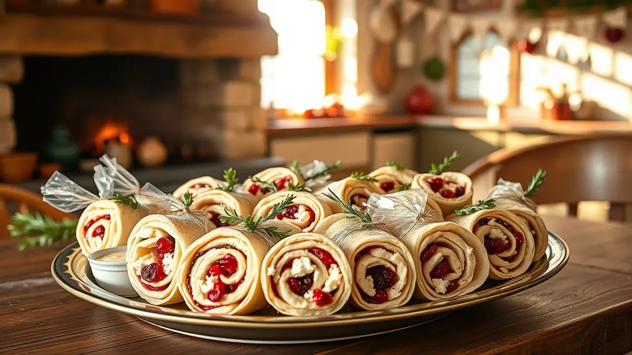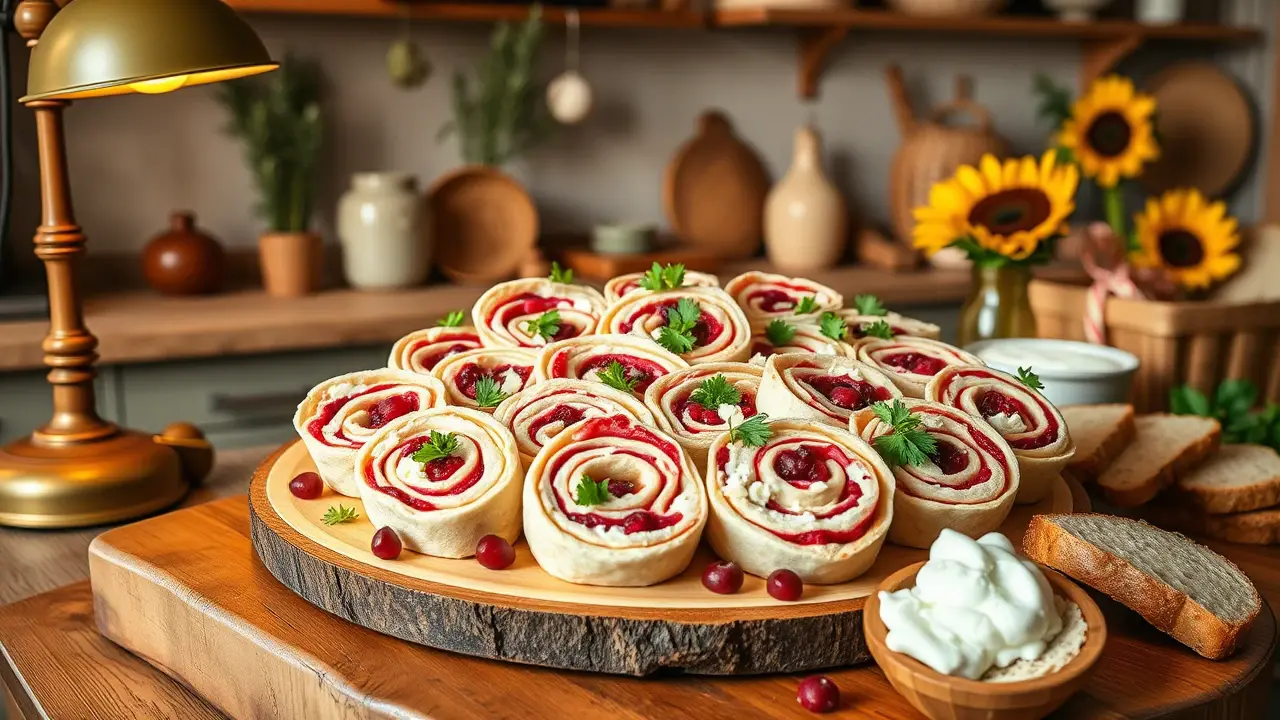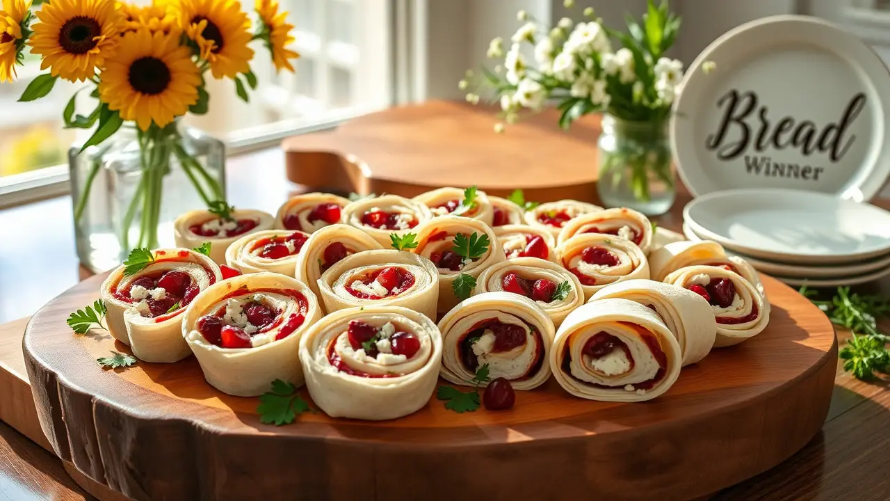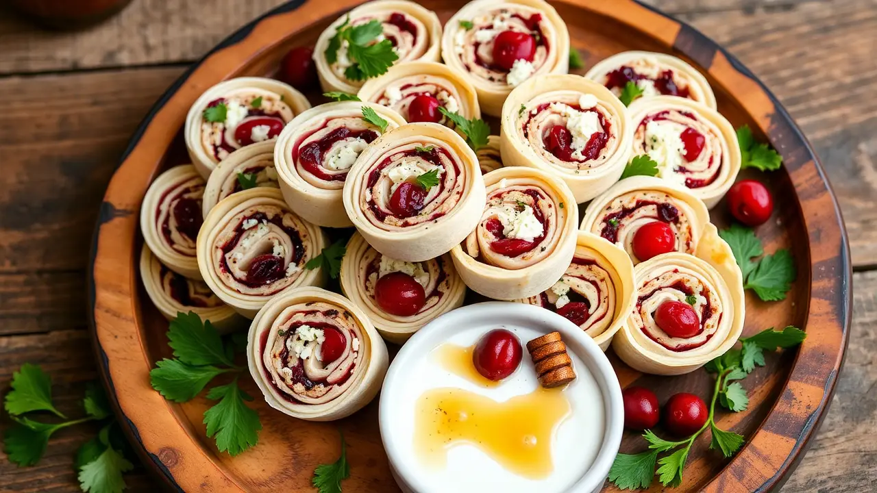 # Cranberry Feta Pinwheels 🌯🍇 These delightful cranberry feta pinwheels are the perfect blend of savory and sweet! They’re ideal for holiday gatherings, picnics, or just a fun snack at home. The creaminess of the feta paired with the tangy cranberries and fragrant herbs creates a culinary delight wrapped in a soft tortilla. They're easy to make, easy to share, and absolutely scrumptious! Consider serving them with a dipping sauce made of Greek yogurt mixed with a touch of honey for an extra tasty combo! 🍯🧄 ## Ingredients ### For the pinwheels - 4 large flour tortillas - 8 oz (225 g) creamy feta cheese, crumbled - 1 cup dried cranberries, roughly chopped - 1/2 cup cream cheese, softened - 1/4 cup fresh parsley, finely chopped - 1/2 teaspoon garlic powder - 1/2 teaspoon black pepper - 1 tablespoon honey (optional) ### For garnish - Fresh parsley leaves - Extra chopped cranberries ## Instructions - In a medium bowl, combine the cream cheese and crumbled feta until well blended. > 🥄 A hand mixer works wonders for achieving a creamy consistency! If you don’t have one, a whisk will suffice; just be prepared for a bit more effort. - Fold in the chopped cranberries, parsley, garlic powder, black pepper, and honey if using. Ensure everything is thoroughly mixed. - Lay out a tortilla on a clean surface and spread a generous layer of the cranberry-feta mixture across the entire tortilla, leaving about 1 inch around the edges. - Starting from one edge, carefully roll the tortilla tightly into a log. Repeat with the remaining tortillas and filling. - Once all the tortillas are rolled, wrap them in plastic wrap and refrigerate for at least 30 minutes to firm up and make slicing easier. - When you're ready to serve, remove from the refrigerator, unwrap, and cut each log into bite-sized pinwheels. > ✂️ A sharp knife works best to create clean cuts. If you encounter any squishing, wipe the knife between cuts to keep things neat! ## Variations - **Gluten-free**: Substitute the flour tortillas with gluten-free wraps. They work just as well! - **Vegetarian Delight**: Replace feta with goat cheese or a vegan substitute for a twist on flavors! - **Spicy Kick**: Add a pinch of crushed red pepper flakes or chopped jalapeños for a fiery flavor! - **Herb Lovers**: Try adding fresh basil or mint for a refreshing burst of flavor that pairs wonderfully with the cranberries. Enjoy these vibrant and flavorful cranberry feta pinwheels at your next gathering, and watch how quickly they disappear! 🥳🌟name