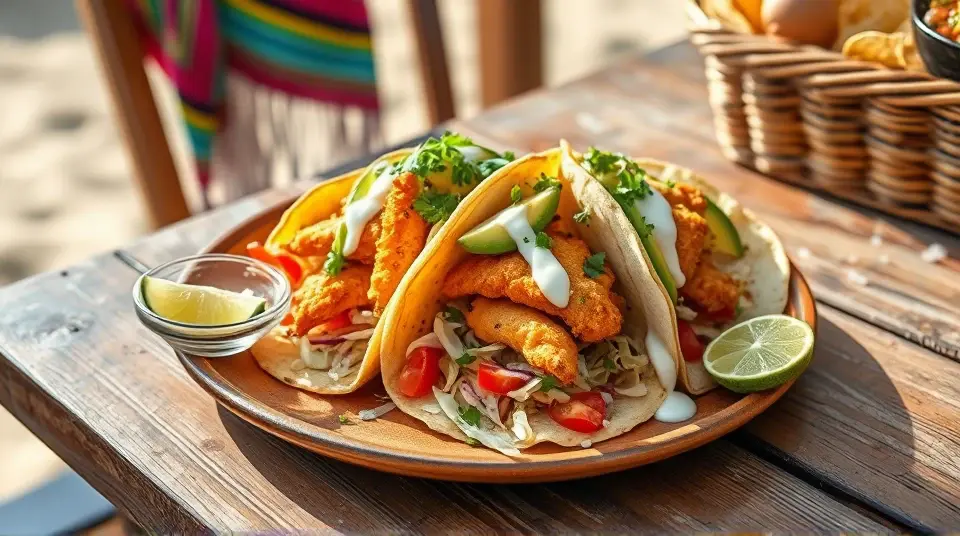 # Best Baja Fish Tacos with Bright, Crisp Dressing 🌮🌊 These Baja fish tacos are the epitome of fresh and flavorful! With crispy, spiced fish and a zesty dressing, you’ll feel like you’re dining by the beach, no matter where you are. Perfect for summer gatherings or a casual weeknight dinner, these tacos are easy to make and packed with vibrant flavors. The dressing is a standout feature, adding zing that perfectly complements the fish. Pair these tacos with a side of tortilla chips and salsa for a complete fiesta experience! 🎉🌶️ ## Ingredients ### For the fish - 1 pound white fish fillets (such as cod or tilapia) - 1 cup all-purpose flour - 1 teaspoon chili powder - 1 teaspoon cumin - 1 teaspoon paprika - 1/2 teaspoon garlic powder - 1/2 teaspoon salt - 1/4 teaspoon cayenne pepper (optional, for heat) - 1 cup beer (or sparkling water for non-alcoholic version) - Vegetable oil for frying ### For the dressing - 1/2 cup Greek yogurt (or sour cream) - 2 tablespoons mayonnaise - 1 tablespoon lime juice - 1 teaspoon honey (or agave for vegan) - 1 tablespoon chopped fresh cilantro - 1/2 teaspoon garlic powder - Salt and pepper, to taste ### For assembly - Corn tortillas - Shredded cabbage (green or purple for color) - Diced tomatoes - Avocado slices - Lime wedges - Extra cilantro for garnish ## Instructions 1. **Prepare the fish:** - In a bowl, mix together flour, chili powder, cumin, paprika, garlic powder, salt, and cayenne pepper. - Dredge the fish fillets in the flour mixture, then dip them into the beer until fully coated. > 🥁 For extra crunch, let the coated fish rest for 10 minutes before frying to allow the batter to adhere better. 2. **Fry the fish:** - Heat about 1 inch of vegetable oil in a large skillet over medium-high heat. - Once hot, fry the fish for about 3-4 minutes on each side until golden and crispy. - Remove and place on paper towels to drain excess oil. 3. **Make the dressing:** - In a small bowl, mix the Greek yogurt, mayonnaise, lime juice, honey, cilantro, garlic powder, and salt and pepper until smooth and creamy. 4. **Assemble the tacos:** - Warm the corn tortillas in a skillet or microwave. - Layer a generous amount of shredded cabbage, crispy fish, diced tomatoes, and avocado slices on each tortilla. - Drizzle with the bright dressing and sprinkle with extra cilantro. 5. **Serve:** - Enjoy the tacos while warm, with lime wedges on the side for an extra squeeze of freshness! > 🌿 Feel free to experiment with toppings! Pickled jalapeños or pineapple salsa can add a delightful twist. ## Variations - **Gluten-free:** Use a gluten-free flour blend for the coating and corn tortillas. - **Baked fish:** Instead of frying, bake seasoned fish fillets at 400°F (200°C) for 12-15 minutes for a lighter option. - **Vegetarian:** Substitute fish with tempura-battered cauliflower or crispy fried avocado for a delicious veggie version. - **Spicy:** Add diced jalapeños to the dressing or layer them in the tacos for an extra kick! Enjoy your Baja fish tacos and let the adventure begin! 🌮✨name