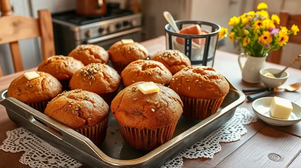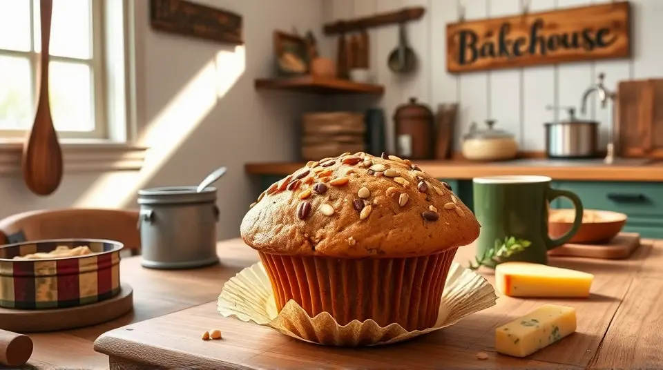 # Savory Pumpernickel Muffins 🌾🥯 These delightful Pumpernickel Muffins are a hearty and wholesome treat, perfect for breakfast or as an accompaniment to your favorite soup or salad. The deep, rich flavors of whole grain rye flour combined with molasses and spices create a unique taste experience that’s both satisfying and nutritious. Serve them warm with a pat of butter or a spread of cream cheese for an extra special touch! 🧈🥰 ## Ingredients ### For the muffins - 1 cup pumpernickel flour - 1 cup all-purpose flour - 1/2 cup brown sugar - 2 teaspoons baking powder - 1/2 teaspoon baking soda - 1/2 teaspoon salt - 1 teaspoon ground caraway seeds (optional for added flavor) - 1 cup buttermilk (or milk with 1 tablespoon of vinegar) - 1/4 cup vegetable oil - 2 large eggs - 1/4 cup molasses ### For the topping (optional) - 1/4 cup sunflower seeds - 1 tablespoon sesame seeds ## Instructions 1. Preheat your oven to 375°F (190°C) and line a muffin tin with paper liners or grease it lightly. 2. In a large bowl, mix the pumpernickel flour, all-purpose flour, brown sugar, baking powder, baking soda, salt, and caraway seeds together until well combined. > 🌿 Caraway seeds add a nice aromatic touch, but they're optional if you prefer a milder flavor. 3. In a separate bowl, whisk together the buttermilk, vegetable oil, eggs, and molasses until well blended. 4. Pour the wet ingredients into the dry ingredients and stir until just combined. Be careful not to overmix; a few lumps are perfectly okay! 5. Spoon the muffin batter into the prepared muffin tin, filling each cup about 2/3 full. 6. If using, sprinkle sunflower and sesame seeds on top for an added crunch and visual appeal. 7. Bake in the preheated oven for 18-20 minutes or until a toothpick inserted in the center comes out clean. 8. Allow the muffins to cool slightly in the pan before transferring them to a wire rack to cool completely. ## Variations - **Savory Additions**: Stir in some chopped cooked bacon, sautéed onions, or grated cheese for an extra savory boost. - **Sweet Spin**: Add chocolate chips or dried fruits like raisins or cranberries for a sweeter version. - **Gluten-free**: Substitute both flours with a gluten-free all-purpose flour blend, but note that texture may change slightly. - **Herbal Twist**: Incorporate fresh herbs like dill or thyme for an aromatic and flavorful lift. ## Serving Suggestions - Enjoy these tasty muffins warm with cream cheese or homemade herb butter. - They also pair wonderfully with rich soups or stews, making them great for chilly evenings! 🍲🌧️ Embrace the unique flavors of pumpernickel in these customizable muffins for a delightful twist at your next meal!name