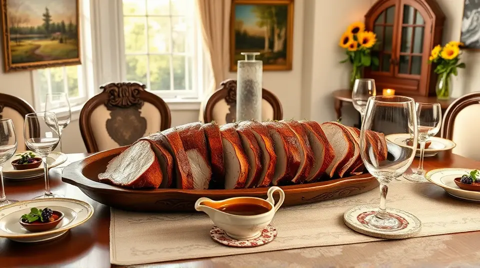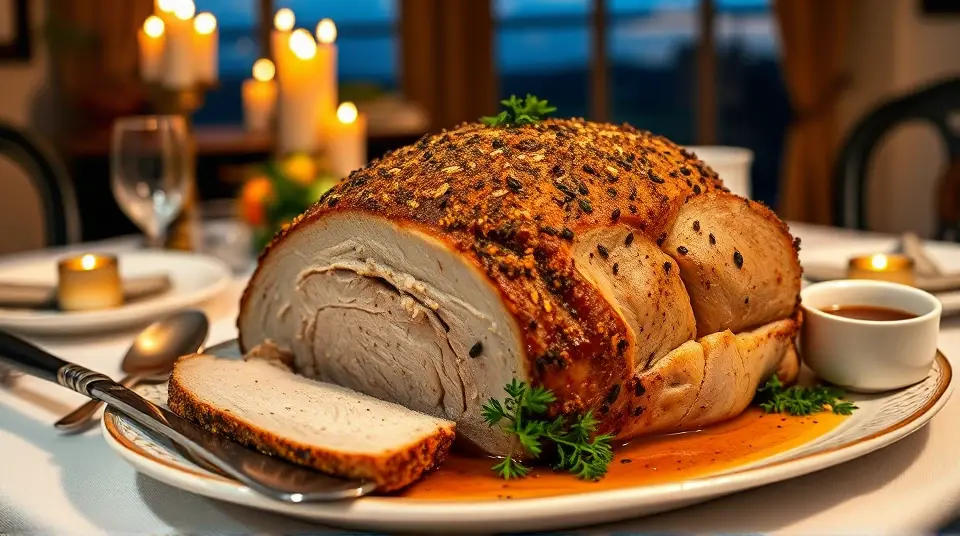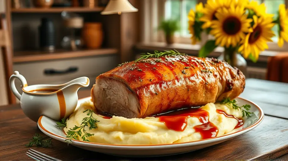 Serve: Slice the pork loin and drizzle it with the gravy, garnishing with fresh parsley.
