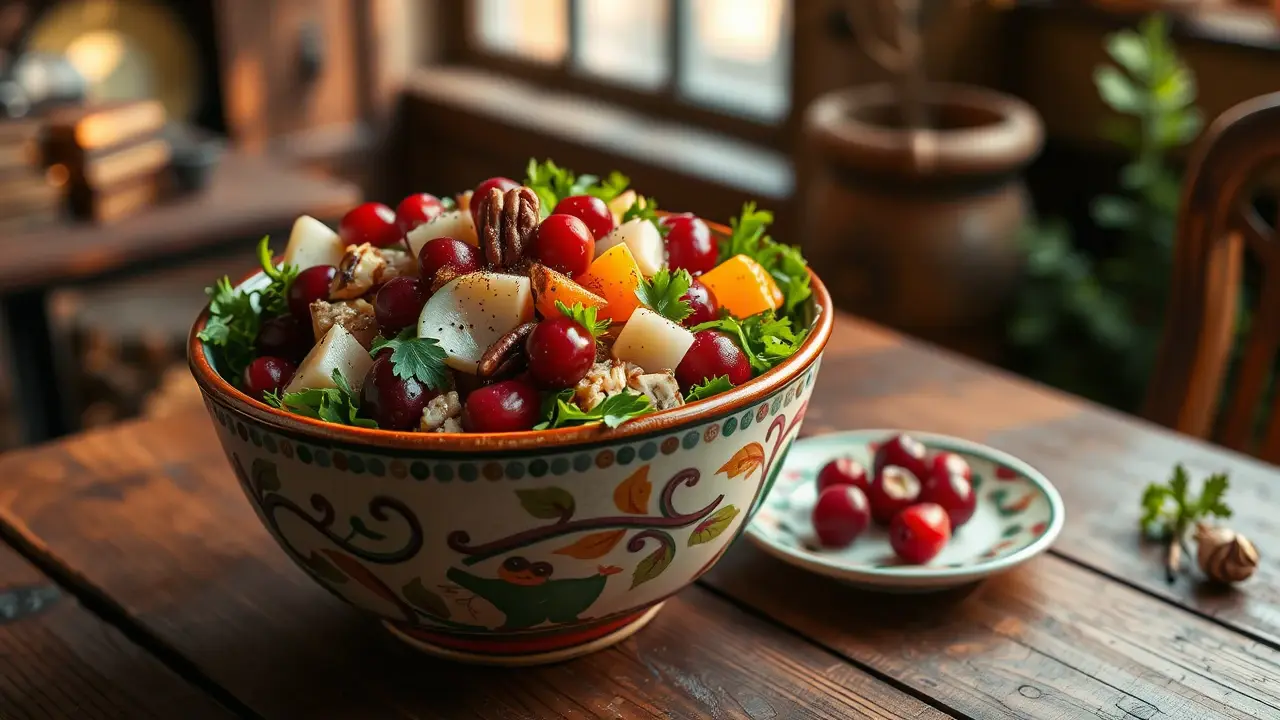 # Festive Cranberry Relish Salad 🥗🍂 This vibrant and refreshing salad is the perfect addition to your holiday table! Bursting with tangy cranberries, crunchy pecans, and sweet fruits, it brings a delightful burst of flavor that complements any festive feast. It's easy to whip up and can be made ahead of time, ensuring you can enjoy the celebrations without any last-minute stress. 🌟 ## Ingredients ### For the salad - 2 cups fresh cranberries (or frozen, thawed) - 1 medium orange, zested and juiced - 1/2 cup sugar (adjust to taste) - 1 cup chopped apples (preferably Granny Smith for a tart contrast) - 1 cup mandarin orange segments (fresh or canned, drained) - 1/2 cup pecans, chopped - 1/4 cup chopped fresh parsley - A pinch of salt ### For the dressing - 1/4 cup olive oil - 2 tablespoons apple cider vinegar - 1 tablespoon honey or maple syrup - Freshly ground black pepper, to taste ## Instructions - In a food processor or blender, combine the cranberries, orange zest, orange juice, and sugar. Pulse until coarsely chopped, but not pureed. > 🥄 You want to preserve some texture in the relish. Adjust the sweetness by adding more or less sugar depending on your taste preference. - Transfer the cranberry mixture to a large bowl and add in the chopped apples, mandarin oranges, pecans, parsley, and a pinch of salt. Gently fold everything together until well combined. - In a smaller bowl, whisk together the olive oil, apple cider vinegar, honey (or maple syrup), and black pepper until the dressing is emulsified. - Pour the dressing over the salad mixture and toss gently to coat evenly. - Cover the salad and refrigerate for at least 2 hours, preferably overnight, to allow the flavors to meld together. > 🧊 This salad can be made up to 3 days in advance! Just give it a good stir before serving to redistribute the dressing. ## Variations - **Nut-free**: Omit the pecans or substitute with seeds such as sunflower seeds for crunch. - **Add a twist**: Stir in some crumbled feta or goat cheese for a creamy element that pairs deliciously with the tart cranberries. - **Spicy kick**: Add a pinch of cayenne or red pepper flakes to the dressing for a bit of heat. - **Tropical flair**: Include diced pineapple or mango chunks to bring a tropical touch to your holiday salad. ## Serving Suggestion Serve this festive salad in a beautiful bowl, perhaps garnished with a few whole cranberries and sprigs of parsley for a pop of color. It pairs wonderfully with roast turkey or glazed ham, and is sure to impress your guests! Enjoy! 🦃🍊name