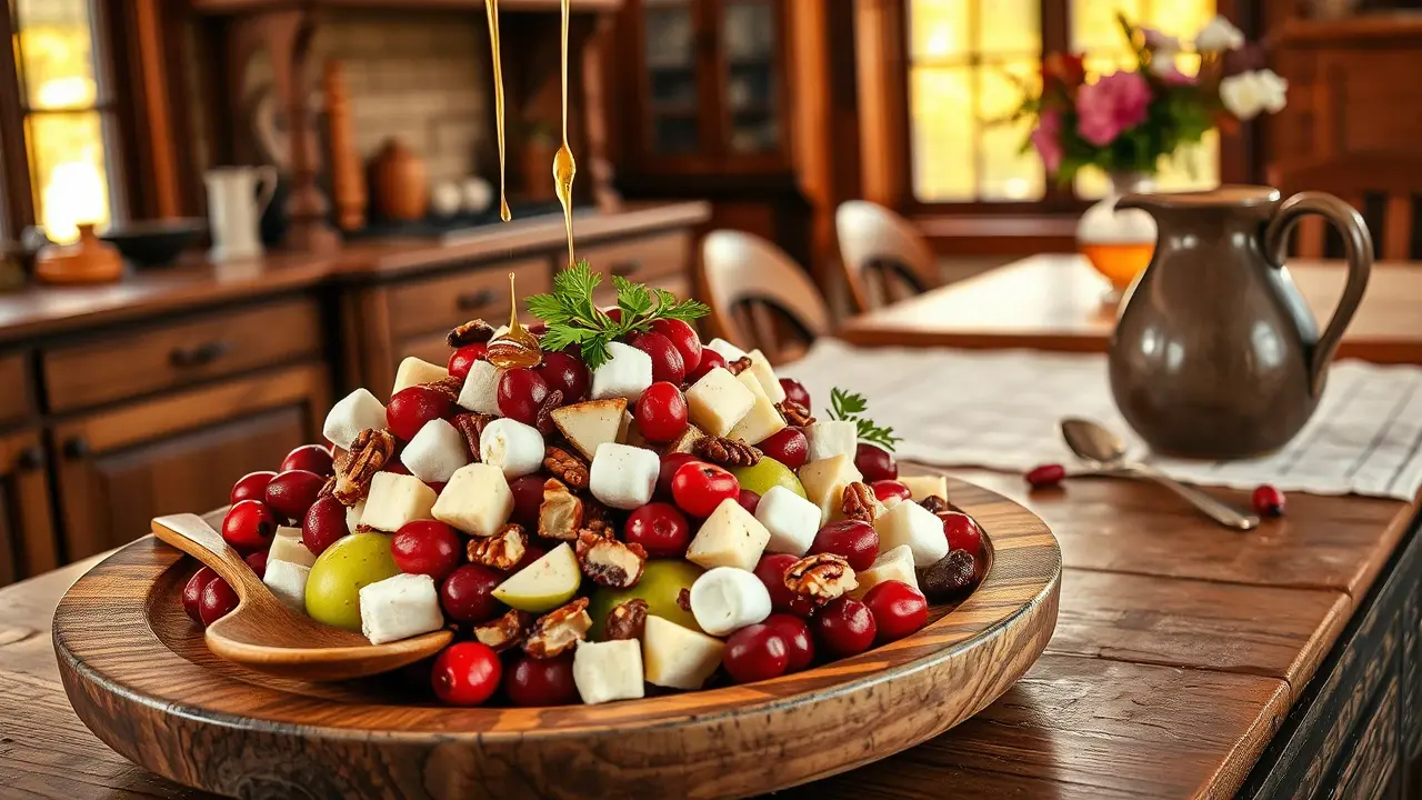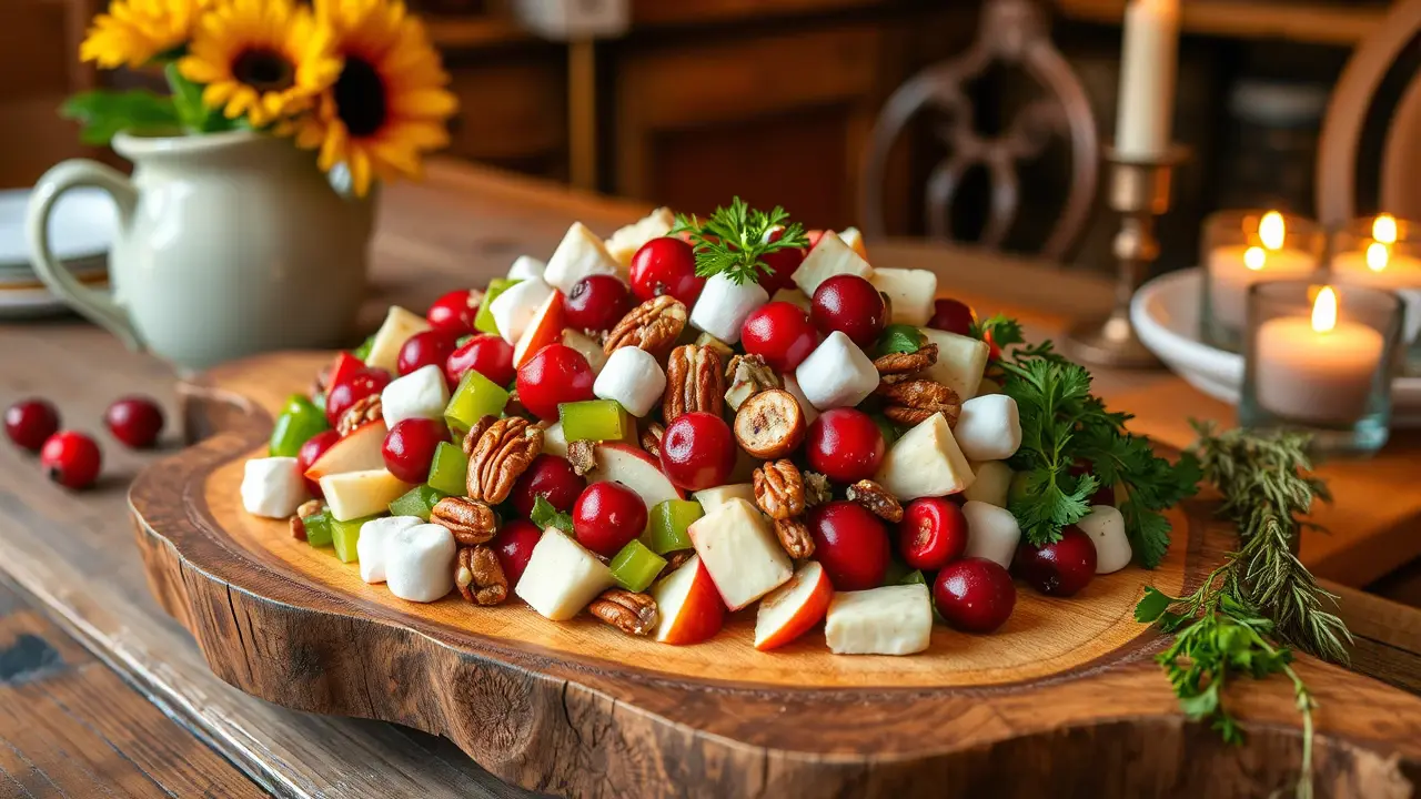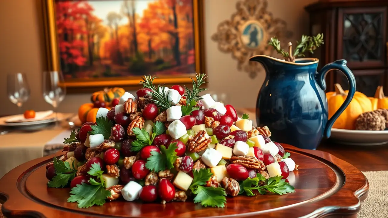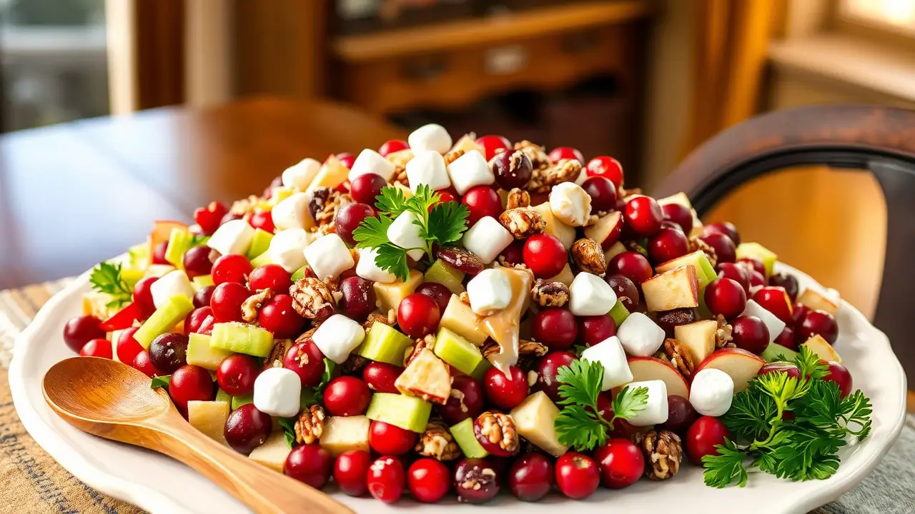 # Thanksgiving Cranberry Salad 🍂🍇 This Thanksgiving Cranberry Salad is a delightful blend of tart and sweet ingredients that will elevate your holiday table. With its vibrant colors and refreshing taste, this salad is not only a perfect side dish but also a light palate cleanser between the hearty courses of Thanksgiving dinner. The crunchy pecans add a lovely texture, while the dressing brings everything together beautifully! 🥗✨ ## Ingredients ### For the salad - 2 cups fresh or frozen cranberries (thawed) - 1 cup diced apples (any variety you prefer) - 1 cup celery, chopped - 1/2 cup pecans, roughly chopped - 1/2 cup mini marshmallows (optional, for sweetness) - 1/4 cup fresh parsley, chopped (for garnish) ### For the dressing - 1/2 cup plain Greek yogurt (or mayonnaise) - 1/4 cup honey or maple syrup - 1 tablespoon lemon juice - 1 teaspoon vanilla extract - A pinch of salt ## Instructions 1. In a medium bowl, combine the cranberries, diced apples, celery, pecans, and mini marshmallows (if using). 2. In a separate bowl, whisk together the Greek yogurt, honey (or maple syrup), lemon juice, vanilla extract, and salt until the dressing is smooth and well combined. > 🥄 If you're using fresh cranberries, you can pulse them in a food processor for a few seconds to chop them roughly. Just be careful not to turn them into puree! 3. Pour the dressing over the cranberry mixture and gently toss until everything is evenly coated. 4. Cover the salad and refrigerate for at least an hour before serving to let the flavors meld together. 5. Before serving, give it another gentle toss and garnish with fresh parsley for a pop of color. > 🌿 For added freshness, consider folding in a handful of spinach or arugula just before serving. This not only enhances the visual appeal but adds extra nutrients too! ## Variations - **Nut-free**: Omit the pecans and replace them with sunflower seeds for a delightful crunch without the nuts. 🌻 - **More tropical**: Add diced pineapple or mandarin oranges for a sweet, tropical twist! 🍍🍊 - **Vegan**: Use a plant-based yogurt and maple syrup for the dressing to keep it completely dairy-free. - **Cinnamon spice**: Add 1/2 teaspoon cinnamon or nutmeg to the dressing for a warm, festive flavor. This Thanksgiving Cranberry Salad is sure to be a delightful addition to your holiday feast, bringing a lovely balance of flavors and textures to your table. Enjoy! 🦃❤️name