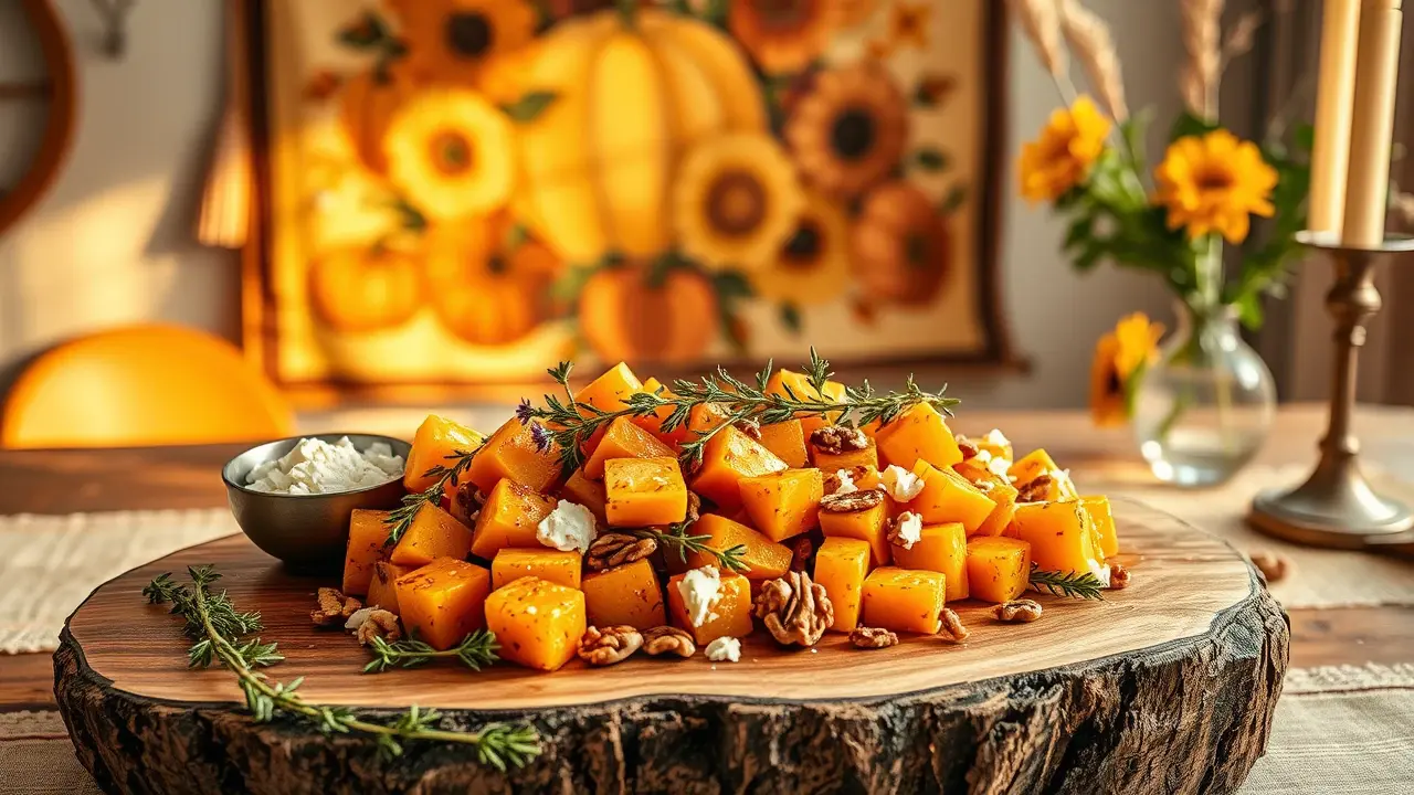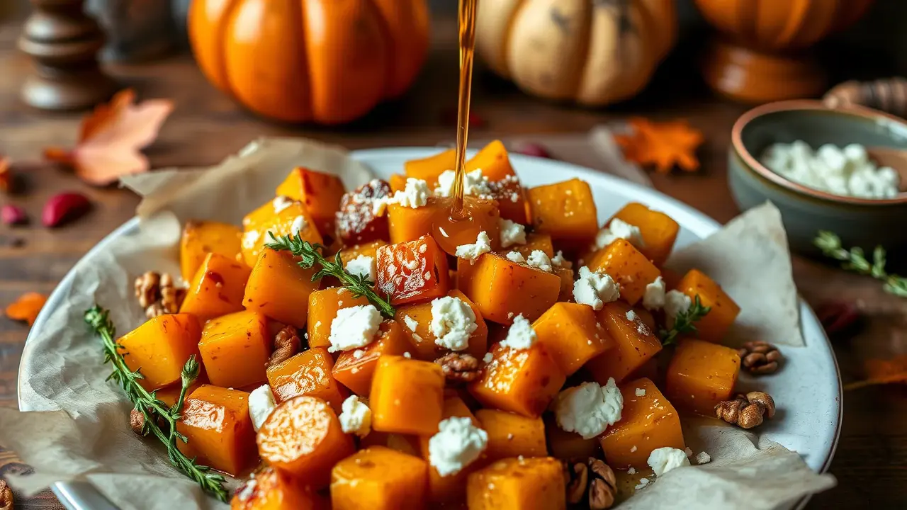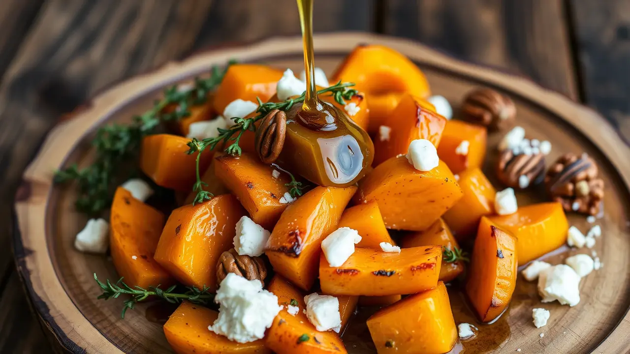 # Harvest-Time Honey Thyme Butternut Squash 🍂🍯 This delightful recipe celebrates the rich flavors of fall with a sweet and savory twist. The natural sweetness of roasted butternut squash is beautifully balanced by the aromatic notes of fresh thyme and a drizzle of honey. Perfect as a side dish for any harvest feast or as a wholesome vegetarian main course! ## Ingredients ### For the squash - 1 medium butternut squash, peeled and cubed - 3 tablespoons olive oil - 1 teaspoon salt - 1/2 teaspoon black pepper - 1 tablespoon fresh thyme leaves (or 1 teaspoon dried thyme) - 3 tablespoons honey ### For garnish - Additional fresh thyme sprigs - Crumbled feta cheese (optional) - Chopped walnuts or pecans (optional) ## Instructions - Preheat your oven to 400°F (200°C). Line a baking sheet with parchment paper for easier cleanup. - In a large bowl, combine the cubed butternut squash with olive oil, salt, pepper, and thyme. Toss until the squash is well-coated with the oil and seasonings. > 🔪 Be sure to cut the squash into even-sized cubes to ensure even cooking. - Spread the squash in a single layer on the prepared baking sheet. Roast in the oven for 25-30 minutes, or until the squash is tender and caramelized, stirring halfway through for even browning. - Once removed from the oven, drizzle the honey over the hot roasted squash and gently toss to combine. > 🍯 The honey will melt slightly and create a delicious glaze, enhancing the flavor of the squash. - Transfer the roasted squash to a serving platter and garnish with additional thyme sprigs, crumbled feta cheese, and chopped nuts if desired for a crunch. ## Variations - **Maple Twist**: Substitute honey with pure maple syrup for a different kind of sweetness. It pairs beautifully with the earthy squash flavor. 🍁 - **Spicy Kick**: Add a sprinkle of cayenne pepper or chili flakes before roasting to give the dish a warm, spicy touch. 🌶️ - **Nut-Free**: Omit the nuts and consider adding toasted sunflower seeds for a nut-free crunch option. - **Vegan**: Leave out the feta or substitute it with vegan cheese to keep it dairy-free. > 🥗 Serve warm as a comforting side dish, or chill and toss it into salads for a unique fall flavor boost! This Harvest-Time Honey Thyme Butternut Squash is sure to impress your guests and elevate any meal. Enjoy the fall bounty! 🍂✨name