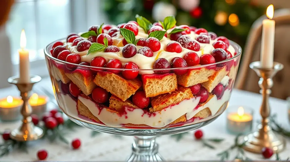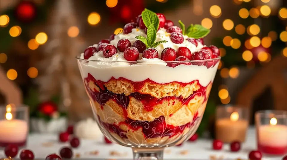 # Frozen Cranberry Salad Trifle 🍓❄️ This delightful Frozen Cranberry Salad Trifle is a refreshing and festive dessert that combines a variety of flavors and textures in each layer. It's the perfect balance of sweet and tart, making it an ideal treat for holiday gatherings or summertime picnics. Just prepare the layers in advance, freeze, and then let your guests marvel at your creation as you serve it! ## Ingredients ### For the cranberry layer - 2 cups fresh or frozen cranberries - 1 cup sugar (adjust based on your sweetness preference) - 1 cup water - 1 tablespoon lemon juice ### For the creamy layer - 1 cup heavy whipping cream - 8 oz cream cheese, softened - 1/2 cup powdered sugar - 1 teaspoon vanilla extract ### For the sponge layer - 1 cup store-bought pound cake, cut into bite-sized pieces - 1/4 cup orange juice ### For the garnish - Fresh mint leaves - Zest of one orange - Extra cranberries (fresh or sugared) ## Instructions 1. **Prepare the cranberry layer:** - In a saucepan, combine the cranberries, sugar, water, and lemon juice. Bring to a boil over medium heat. - Reduce the heat and let it simmer for about 10 minutes, or until the cranberries burst and the mixture thickens slightly. Remove from heat and let it cool. 2. **Make the creamy layer:** - In a mixing bowl, beat the softened cream cheese until smooth. Gradually add in powdered sugar and vanilla extract. - In a separate bowl, whip the heavy whipping cream until stiff peaks form. - Gently fold the whipped cream into the cream cheese mixture until combined. 3. **Assemble the trifle:** - In a large trifle dish or individual glasses, layer half of the pound cake pieces at the bottom. - Drizzle half of the orange juice over the cake pieces. - Spoon half of the cranberry mixture over the cake layer, followed by half of the creamy layer. - Repeat the layers with the remaining cake, juice, cranberry mixture, and creamy layer. 4. **Freeze the trifle:** - Cover the trifle with plastic wrap and freeze for at least 4 hours or until firm. 5. **Serve:** - Before serving, let the trifle sit at room temperature for about 15 minutes to soften slightly. - Garnish with fresh mint leaves, orange zest, and extra cranberries. > 🍽️ Enjoy with a friend or family member, as this delicious trifle is perfect shared! Each bite brings a burst of flavor and a delightful crunch that everyone will love. ## Variations - **Nutty Addition**: Sprinkle chopped pecans or walnuts between the layers for an added crunch! 🌰 - **Boozy Treat**: Incorporate a splash of orange liqueur with the orange juice for a fun adult twist. 🍹 - **Fruit Swap**: You can substitute cranberries with raspberries or strawberries for a different fruit profile if desired! 🍓 - **Vegan Option**: Use coconut cream instead of heavy whipping cream and a dairy-free cream cheese alternative to make it plant-based. 🌱 This Frozen Cranberry Salad Trifle is sure to be a crowd-pleaser at your next event, offering a vibrant and delicious twist on traditional salad desserts! Enjoy! 🎉name