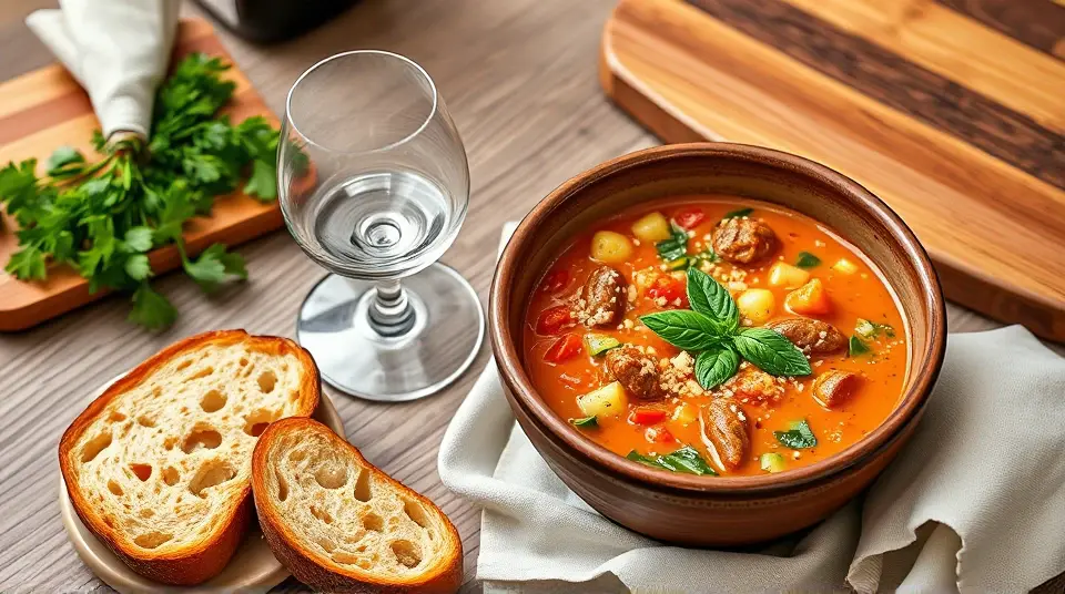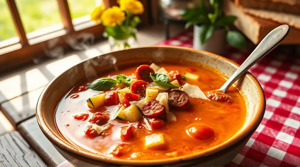 # Zucchini Tomato Soup with Italian Sausage 🍲🌿 This hearty and aromatic soup is a perfect blend of fresh summer flavors and comforting warmth. The addition of Italian sausage gives it a delicious kick, while the zucchini and tomatoes create a nourishing base. It's an excellent option for a cozy dinner or a quick meal prep for the week. Pair it with a slice of crusty bread for a fulfilling experience! 🥖🍅 ## Ingredients ### For the soup base - 2 tablespoons olive oil - 1 medium onion, diced - 2 cloves garlic, minced - 1 pound Italian sausage, casings removed - 3 medium zucchinis, chopped - 1 (14-ounce) can diced tomatoes (with juices) - 4 cups vegetable or chicken broth - 1 teaspoon dried oregano - 1 teaspoon dried basil - Salt and pepper to taste ### For garnish - Fresh basil leaves, chopped - Grated Parmesan cheese (optional) - Crusty bread, for serving ## Instructions 1. **Sauté the Aromatics**: In a large pot, heat the olive oil over medium heat. Add the diced onion and cook until translucent, about 5 minutes. Stir in the minced garlic and sauté for another minute until fragrant. 2. **Brown the Sausage**: Add the Italian sausage to the pot. Cook, breaking it apart with a spoon, until browned and cooked through, about 6-8 minutes. Drain excess fat if necessary. 3. **Add Zucchini and Tomatoes**: Stir in the chopped zucchini and canned diced tomatoes, along with their juices. Mix well and cook for an additional 3-4 minutes. 4. **Pour in the Broth**: Add the broth, dried oregano, and dried basil. Season with salt and pepper to taste. Bring the soup to a gentle boil, then reduce the heat and let it simmer for about 20 minutes, allowing the flavors to meld together. 5. **Blend if Desired**: For a smoother texture, you can use an immersion blender to puree the soup to your desired consistency. Alternatively, leave it chunky for a heartier feel! 6. **Serve**: Ladle the soup into bowls and garnish with freshly chopped basil and grated Parmesan cheese, if using. Enjoy with a slice of crusty bread on the side. > 🍽️ This soup can be refrigerated for up to 3 days, and it often tastes even better on the second day as the flavors continue to develop. ## Variations - **Spicy Kick**: Use hot Italian sausage instead of mild, or add red pepper flakes for extra heat. 🌶️ - **Vegetarian**: Substitute the sausage with a plant-based sausage or add more vegetables like bell peppers and carrots. - **Creamy Soup**: Stir in a splash of heavy cream or a dollop of sour cream just before serving for a richer finish. - **Herbaceous Twist**: Experiment with fresh herbs like thyme or dill in addition to or instead of the dried herbs for a unique flavor profile. Whip up this comforting soup and enjoy a taste of Italy in every bowl! 🍅🇮🇹name