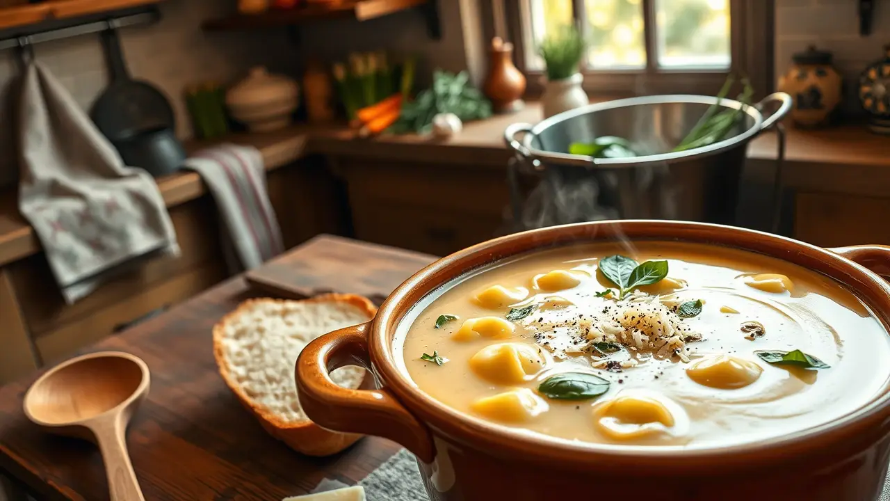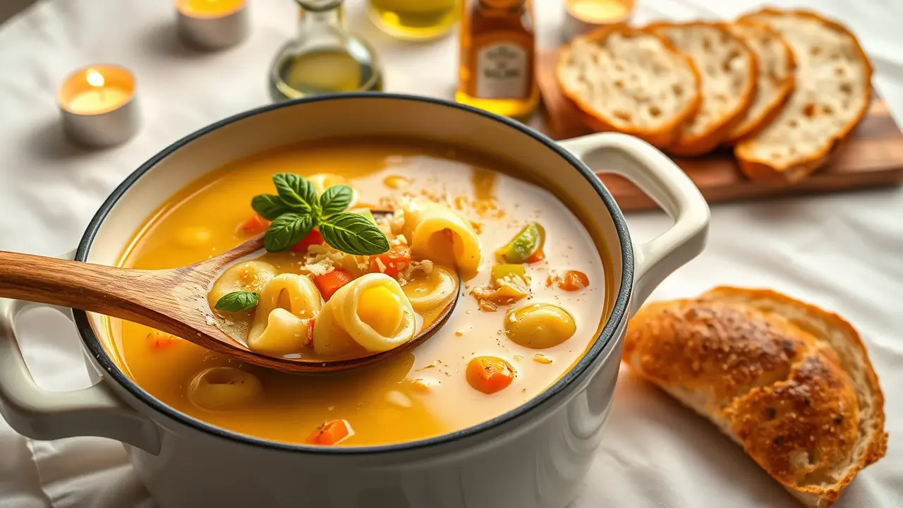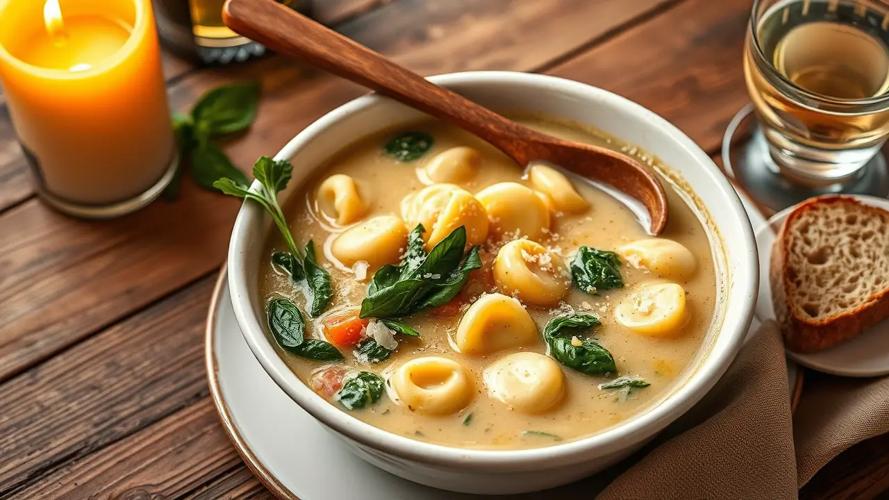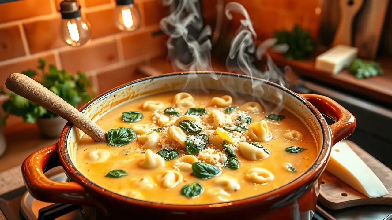 # Creamy Tortellini Soup 🍲💖 This Creamy Tortellini Soup is a comforting, delicious dish that warms the soul. It’s loaded with tender cheese tortellini, fresh vegetables, and a creamy broth that’s perfect for chilly evenings. Simple to make and absolutely customizable, this soup will surely become a favorite in your household! ## Ingredients ### For the soup base - 2 tablespoons of olive oil - 1 medium onion, diced - 3 cloves of garlic, minced - 2 medium carrots, sliced - 2 stalks celery, diced - 4 cups vegetable broth (or chicken broth) - 1 can (14 ounces) diced tomatoes, undrained - 1 teaspoon dried Italian herbs (basil, oregano, thyme) - Salt and pepper to taste ### For the creamy finish - 1 cup heavy cream (or a dairy-free alternative) - 1 package (9 ounces) cheese tortellini, fresh or frozen - 2 cups fresh spinach (or kale for a heartier option) - Grated Parmesan cheese for serving - Fresh basil or parsley for garnish ## Instructions - Heat the olive oil in a large pot over medium heat. Add the diced onion and cook until soft and translucent, about 4-5 minutes. > 🥄 Stir occasionally to prevent the onions from browning too much, as you want them to be sweet and tender. - Add the garlic, carrots, and celery, cooking for an additional 3-4 minutes until the vegetables are slightly softened. - Pour in the vegetable broth and diced tomatoes. Stir in the Italian herbs, salt, and pepper. Bring the mixture to a gentle boil. - Once boiling, add the tortellini into the pot and cook according to the package instructions (usually about 4-7 minutes for fresh tortellini, longer for frozen). > 🌿 For added flavor, feel free to toss in red pepper flakes for a little kick! - When the tortellini is tender, reduce the heat to low and stir in the heavy cream. Add the fresh spinach and allow it to wilt into the soup for another 2-3 minutes. - Taste and adjust the seasoning if needed. Then, serve hot, topped with grated Parmesan cheese and fresh herbs. ## Variations - **Vegetable Loaded**: Add in your favorite vegetables like zucchini, bell peppers, or mushrooms to boost the nutritional value and flavor profile. Just chop them into bite-sized pieces and add them along with the carrots and celery. - **Protein Pack**: Incorporate cooked chicken, sausage, or chickpeas for a protein boost. This makes the soup even heartier. - **Gluten-free**: Use gluten-free tortellini or swap for another type of pasta that fits your dietary needs. You might need to adjust the cooking time accordingly. - **Vegan**: Replace the heavy cream with coconut cream or a blend of cashews soaked in water, and use vegan tortellini or eliminate the pasta altogether and serve over quinoa or rice for a nourishing bowl. > 🧊 You can refrigerate leftovers for up to 3 days. To reheat, add a splash of broth to loosen it up, as it tends to thicken in the fridge. Enjoy this comforting bowl of goodness any day of the week!name