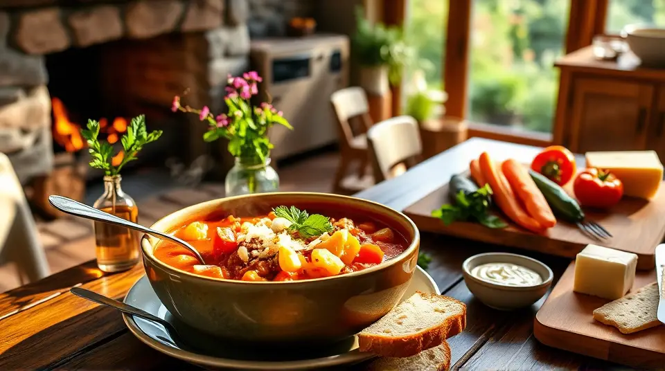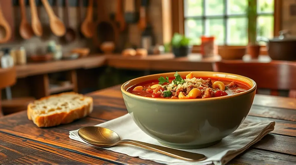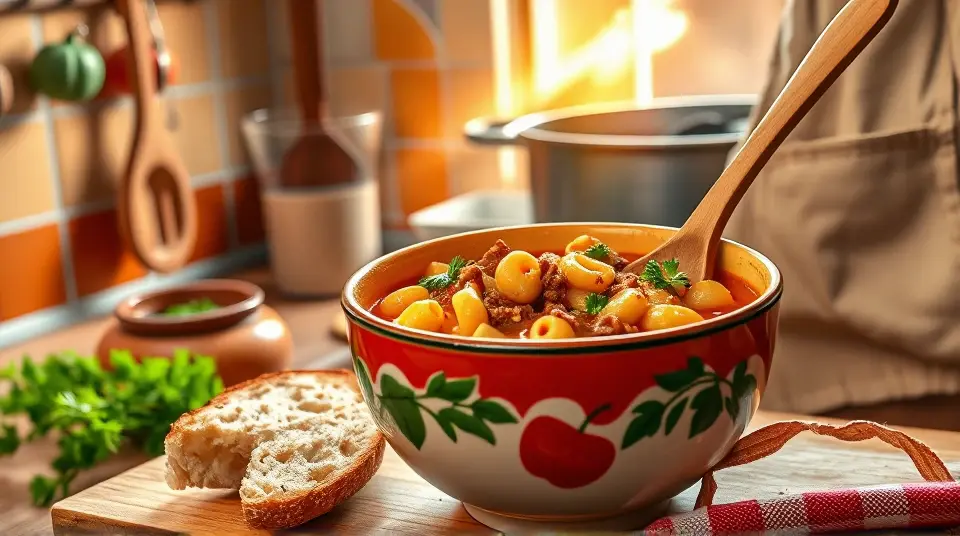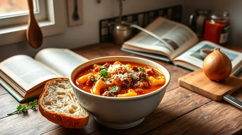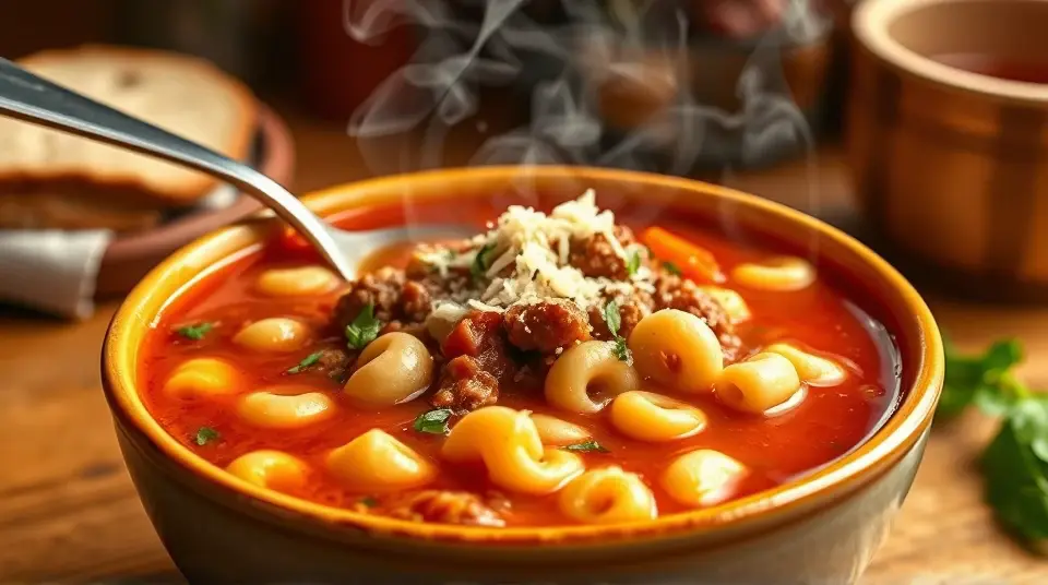 # Busy Day Tomato Soup with Ground Beef and Macaroni 🍅🍜 This hearty and flavorful soup is a fantastic one-pot meal, perfect for busy days when you need something quick yet satisfying. With tender ground beef, comforting macaroni, and a rich tomato base, this soup will warm your heart and fill your belly. Enjoy it with a slice of crusty bread or a sprinkle of cheese for an extra kick! ## Ingredients ### For the soup - 1 pound ground beef - 1 onion, diced - 2 cloves garlic, minced - 1 carrot, finely chopped - 1 celery stalk, finely chopped - 1 can (28 oz) crushed tomatoes - 4 cups beef broth (or vegetable broth) - 1 cup elbow macaroni - 1 teaspoon dried basil - 1 teaspoon dried oregano - Salt and pepper to taste ### For the garnish - Fresh parsley, chopped - Grated Parmesan cheese (optional) ## Instructions - In a large pot over medium heat, add the ground beef. Cook until browned, breaking it apart with a spoon as it cooks. > 🍳 Ensure that the beef is fully cooked before proceeding. If there's excess fat, drain it off to keep the soup from becoming greasy. - Add the diced onion, garlic, carrot, and celery to the pot. Sauté until the vegetables are tender, about 5 minutes. - Pour in the crushed tomatoes and beef broth. Stir to combine. - Add the elbow macaroni, dried basil, dried oregano, salt, and pepper. Bring the soup to a gentle boil. > ⏲️ For extra flavor, consider adding a splash of Worcestershire sauce or a teaspoon of sugar to balance the acidity of the tomatoes. - Reduce the heat to simmer and cook for about 10-12 minutes, or until the macaroni is al dente. - Remove from heat and stir in fresh parsley just before serving. - Ladle the soup into bowls and top with grated Parmesan cheese, if desired. ## Variations - **Vegetarian**: Replace ground beef with lentils or a meat substitute (like crumbled tempeh) and use vegetable broth for a plant-based version. 🌱 - **Spicy**: Add a teaspoon of red pepper flakes when sautéing the vegetables for a spicy kick! 🔥 - **Creamy**: Stir in 1/2 cup of heavy cream or a dollop of sour cream at the end for a creamy texture. - **High altitude**: Increase the cooking time for the macaroni, as it may take longer to reach the perfect tenderness at higher elevations. This Busy Day Tomato Soup with Ground Beef and Macaroni is not just simple to make but also comforting enough to bring a smile to your face on even the busiest days! 🥣❤️name