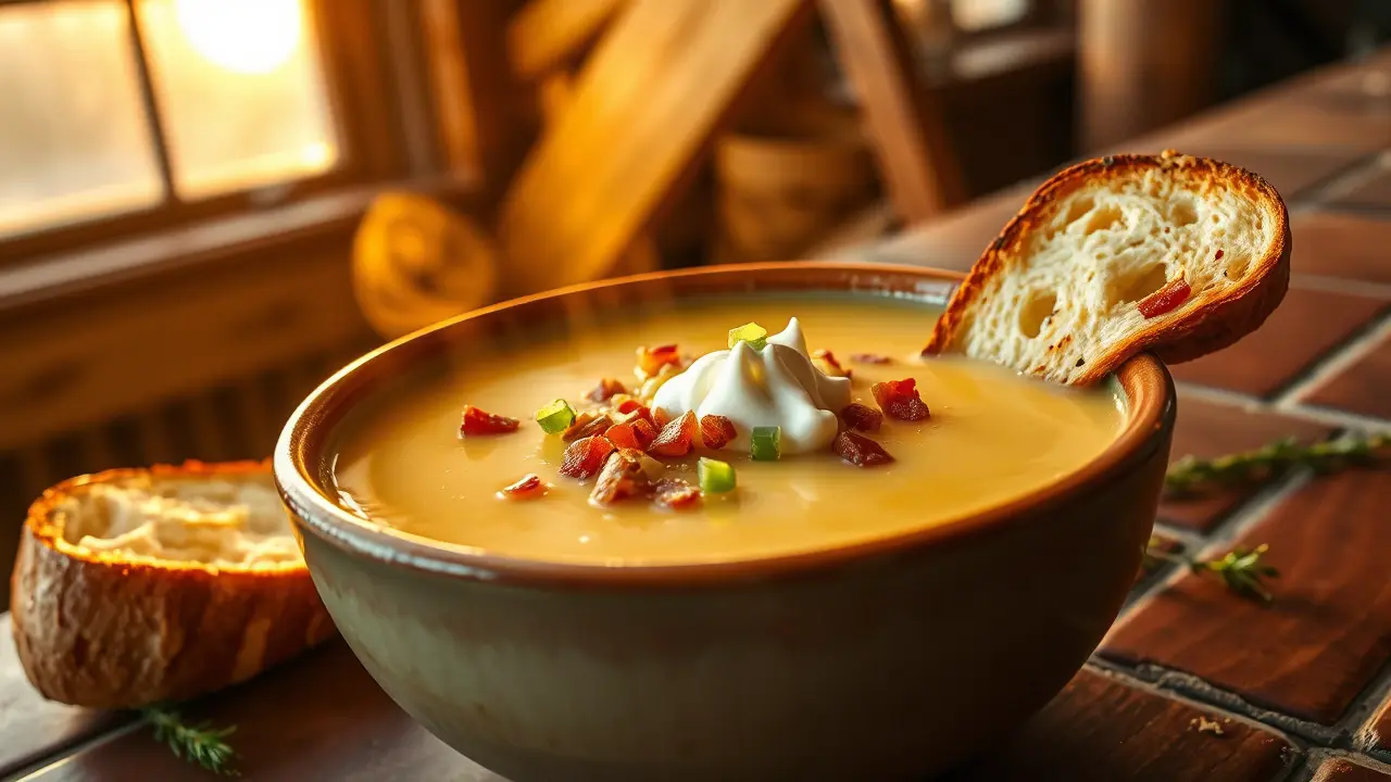 # Rich and Creamy Potato Soup 🥔🥄 This delightful potato soup is thick, creamy, and bursting with flavor! Perfect for chilly evenings or as a comforting dish to warm your soul. It's easy to prepare and can be garnished with your favorite toppings, making it a versatile meal option for any occasion. Consider serving it with crusty bread or a fresh side salad for a complete meal. 🥖🥗 ## Ingredients ### For the soup base - 4 medium-sized potatoes, peeled and diced - 1 medium onion, chopped - 2 cloves garlic, minced - 4 cups vegetable broth (or chicken broth for a richer flavor) - 1 cup heavy cream (or coconut milk for a lighter version) - 1 teaspoon dried thyme - 1 teaspoon smoked paprika - Salt and pepper to taste ### For the toppings - Crispy bacon bits (optional) - Shredded cheese (cheddar or your favorite) - Chopped green onions or chives - A dollop of sour cream or Greek yogurt - Croutons for added crunch ## Instructions - In a large pot, combine the diced potatoes, chopped onion, and minced garlic. - Pour in the vegetable (or chicken) broth, ensuring the vegetables are fully submerged. Bring to a boil over medium-high heat. > 🔥 Allow the soup to gently boil for about 15-20 minutes or until the potatoes are tender. You can also add a bay leaf for extra flavor during this step and remove it before blending! - Once the potatoes are cooked, remove the pot from heat. Use an immersion blender to puree the soup until smooth. For an extra creamy texture, you can blend only half of the soup and leave some chunky bits for added substance. > 💡 If you don't have an immersion blender, carefully transfer the soup in batches to a standard blender. Keep a kitchen towel over the lid to prevent steam from escaping! - Stir in the heavy cream (or coconut milk), dried thyme, smoked paprika, and season with salt and pepper to taste. Return the soup to low heat and let it simmer for another 5 minutes. ## Variations - **Vegan**: Substitute the heavy cream with coconut milk or cashew cream for a rich, dairy-free version. - **Add Veggies**: Incorporate carrots, celery, or even kale for extra nutrition and color. - **Spicy**: Add a kick with red pepper flakes or diced jalapeños for a spicy twist. - **Cheesy**: Stir in a cup of shredded cheese into the hot soup before serving for an extra creamy and cheesy indulgence. > 🥣 This soup can be stored in the refrigerator for up to three days, making it perfect for meal prep! Just reheat gently on the stove when you're ready to enjoy. ## Serving Suggestions Garnish each bowl with your choice of toppings like crispy bacon bits, shredded cheese, and a sprinkle of fresh green onions. Serve with warm toasted bread for a satisfying meal that will keep everyone coming back for more! Enjoy your cozy bowl of richness! 🍲✨name