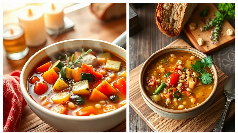 # Cozy Vegetable Barley Soup 🌾🥕🍲 This hearty and nourishing Vegetable Barley Soup is the perfect one-pot dish to warm you on a chilly day! Packed with fibrous vegetables and wholesome barley, it's not only delicious but also satisfying. The medley of flavors will delight your taste buds, making it a comforting meal for the whole family. Pair it with crusty bread for a complete and satisfying experience! 🍞🥖 ## Ingredients ### For the soup - 1 cup pearl barley - 1 tablespoon olive oil - 1 onion, diced - 2 carrots, diced - 2 celery stalks, diced - 3 cloves garlic, minced - 6 cups vegetable broth - 1 can (14.5 oz) diced tomatoes, with juice - 1 zucchini, diced - 1 bell pepper, diced (any color) - 1 teaspoon dried thyme - 1 teaspoon smoked paprika - Salt and pepper, to taste - 2 cups fresh spinach (or kale), roughly chopped - Fresh parsley, for garnish ## Instructions - Rinse the pearl barley under cold water and set aside. - In a large pot, heat the olive oil over medium heat. - Add the diced onion, carrots, and celery. Sauté for about 5-7 minutes, or until the veggies soften and the onions become translucent. > 🥄 Stir occasionally to prevent the vegetables from sticking to the bottom of the pot. - Add the minced garlic and cook for an additional minute, until fragrant. - Stir in the rinsed barley, vegetable broth, diced tomatoes, zucchini, bell pepper, thyme, smoked paprika, salt, and pepper. - Bring the soup to a boil, then reduce the heat to low and cover. Allow it to simmer for about 30-40 minutes, or until the barley is tender. > 🧊 Keep an eye on the texture. If you prefer a thicker soup, you can mash some of the barley against the side of the pot or adjust the liquid levels. - Five minutes before serving, stir in the fresh spinach (or kale) and let it wilt. - Taste and adjust the seasoning as needed. - Serve hot, garnished with fresh parsley. Enjoy your cozy bowl of goodness! ## Variations - **Protein boost**: Add a can of chickpeas or black beans for added protein and fiber. - **Spicy kick**: Toss in some red pepper flakes or diced jalapeños for a spicy twist. 🌶️ - **Herbaceous flair**: Replace dried thyme with fresh herbs like dill or basil for a different flavor profile. - **Gluten-free**: Substitute barley with quinoa or brown rice. Just adjust the cooking time accordingly. This Vegetable Barley Soup is sure to become a staple in your kitchen, perfect for meal prep or serving to guests. Enjoy every hearty spoonful! 🥄💖name