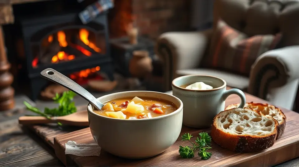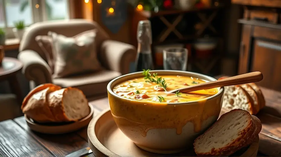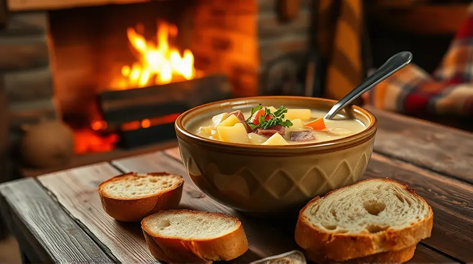 # Cozy Ham and Potato Chowder 🥔💖 This hearty chowder is a delightful mix of flavors that warms your heart and soul. Perfect for chilly evenings or family gatherings, it features creamy potatoes, smoky ham, and a blend of savory spices. Each spoonful is packed with nostalgia and comfort, making it a fantastic choice for dinner or as a satisfying lunch. Serve it with crusty bread for dipping! ## Ingredients ### For the chowder - 4 medium-sized potatoes, diced (Russet or Yukon Gold work best) - 1 cup of diced cooked ham (leftover ham is perfect!) - 1 medium onion, finely chopped - 2 cloves garlic, minced - 2 carrots, diced - 2 celery stalks, diced - 4 cups chicken or vegetable broth - 2 cups heavy cream - 1 tablespoon olive oil - 1 teaspoon dried thyme - 1 teaspoon smoked paprika - Salt and pepper to taste - Fresh parsley, chopped (for garnish) ### Optional toppings - Shredded cheese (such as cheddar or Monterey Jack) - Green onions, sliced - Crumbled bacon - A dollop of sour cream ## Instructions 1. **Sauté the Vegetables**: In a large pot, heat the olive oil over medium heat. Add the chopped onion, carrots, and celery. Sauté for about 5-7 minutes until they soften. Stir in the minced garlic and cook for another minute until fragrant. > 🥄 Sautéing the vegetables first helps build a flavor base that enhances the overall taste of the chowder! 2. **Add the Potatoes and Broth**: Stir in the diced potatoes, dried thyme, smoked paprika, salt, and pepper. Pour in the chicken or vegetable broth and bring to a boil. Reduce the heat and let it simmer for about 15-20 minutes or until the potatoes are tender. 3. **Incorporate Ham and Cream**: Once the potatoes are cooked, add the diced ham and heavy cream to the pot. Stir well and let simmer for an additional 10 minutes, allowing the flavors to meld. 4. **Taste and Adjust**: Taste the chowder and adjust the seasoning if necessary. If you prefer a thicker chowder, you can mash a few potatoes against the side of the pot. > 🧂 Feel free to be creative with the seasonings! A pinch of cayenne or a dash of Worcestershire sauce adds a nice twist. 5. **Serve Hot**: Ladle the chowder into bowls and garnish with fresh parsley and any optional toppings you desire. > 🍞 Paired with a hearty slice of bread, this chowder makes for a fulfilling meal that your family will love! ## Variations - **Vegetarian**: Substitute the ham with smoked tofu or add extra vegetables like bell peppers and zucchini for flavor without the meat. - **Spicy**: Add diced jalapeños or a dash of hot sauce to give your chowder a kick! - **Cheese Lovers**: Stir in some shredded cheese at the end for a creamier and cheesier chowder. - **Instant Pot**: You can make this chowder in an Instant Pot! Sauté the veggies, add the rest of the ingredients, and cook on high pressure for 10 minutes. Enjoy your cozy bowl of Ham and Potato Chowder! It's the perfect dish to enjoy while snuggled up on the couch. 🌟🥄name