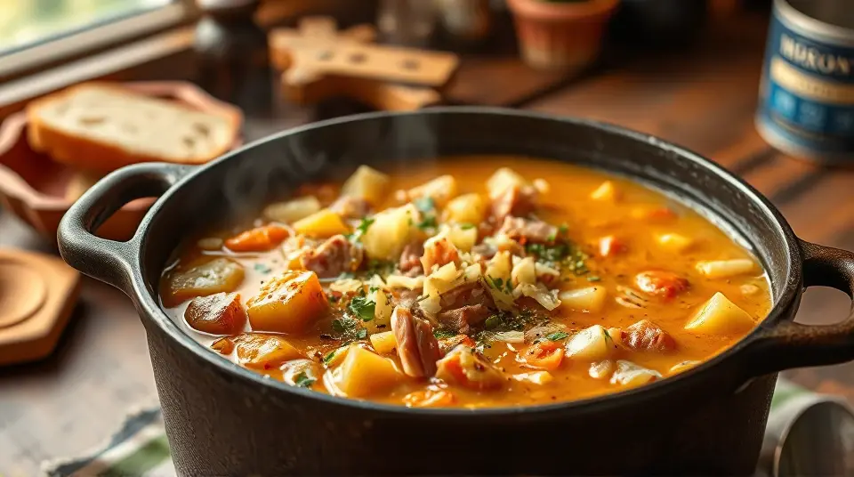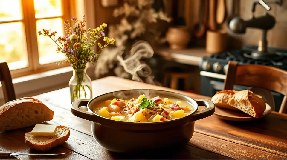 This hearty chowder is a delightful mix of flavors that warms your heart and soul. Perfect for chilly evenings or family gatherings, it features creamy potatoes, smoky ham, and a blend of savory spices. Each spoonful is packed with nostalgia and comfort, making it a fantastic choice for dinner or as a satisfying lunch. Serve it with crusty bread for dipping!