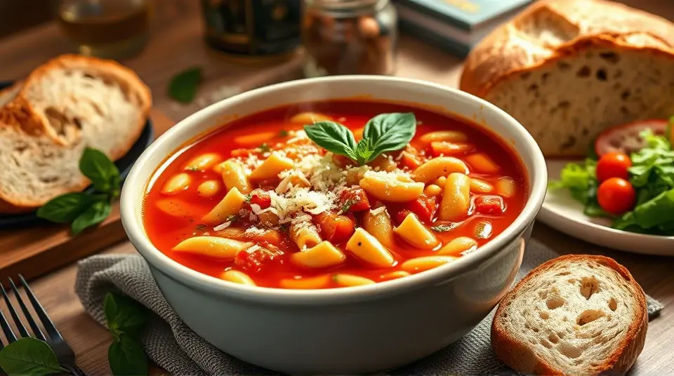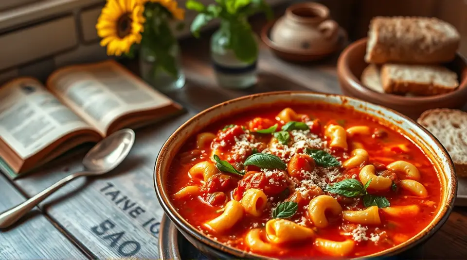 # Very Tomato Pasta e Fagioli 🍅🍝 This hearty and comforting dish is a creative twist on the traditional Pasta e Fagioli. Bursting with rich tomato flavor and packed with protein, it’s perfect for a cozy dinner or a family gathering. The addition of fresh herbs and spices elevates the dish to a whole new level, making it a must-try for any tomato lover! ## Ingredients ### For the Soup Base - 2 tablespoons of olive oil - 1 medium onion, finely chopped - 2 cloves of garlic, minced - 2 medium carrots, diced - 2 celery stalks, diced - 1 can (28 oz) of crushed tomatoes - 4 cups of vegetable broth (or chicken broth for a non-vegetarian option) - 1 can (15 oz) of cannellini beans, drained and rinsed - 1 teaspoon of dried oregano - 1 teaspoon of dried basil - 1/2 teaspoon of red pepper flakes (adjust to taste) ### For the Pasta - 1 cup of ditalini pasta (or pasta of your choice) - Salt and pepper to taste - Fresh basil or parsley for garnish - Grated Parmesan cheese for serving (optional) ## Instructions - In a large pot, heat the olive oil over medium heat. Add the onion, garlic, carrots, and celery. Sauté until softened, about 5-7 minutes. > 🥄 Stir occasionally to prevent sticking and add a pinch of salt to help the veggies release their moisture. - Pour in the crushed tomatoes and vegetable broth, and bring the mixture to a simmer. Add the cannellini beans, oregano, basil, and red pepper flakes. Simmer for 15-20 minutes to let the flavors meld. - Once the soup is at a gentle boil, add the ditalini pasta. Cook according to package instructions until al dente, usually around 8-10 minutes. > 🥣 The pasta will absorb some of the broth, so keep an eye on it. If it gets too thick, add a splash of water or broth to loosen it up. - Season with salt and pepper to taste. Remove from heat and let it sit for a couple of minutes to thicken further. - Spoon into bowls and garnish with fresh basil or parsley. Sprinkle with grated Parmesan cheese if desired. ## Variations - **Vegetarian/Vegan**: This recipe is already plant-based, but you can add more veggies like zucchini or spinach for extra nutrients! 🍆 - **Protein-Packed**: Add cooked Italian sausage or browned ground beef for a heartier meal. - **Spicy Twist**: Add a splash of hot sauce or more red pepper flakes for an extra kick! 🌶️ - **Creamy Add-In**: Stir in a spoonful of heavy cream or coconut milk at the end for a creamier texture. > 🍽️ Serve with crusty bread or a side salad for a complete and satisfying meal! This Very Tomato Pasta e Fagioli is not only delicious but also versatile, making it a perfect go-to dish. Enjoy the comforting flavors that will warm you from the inside out!name