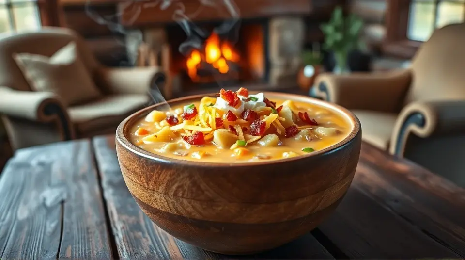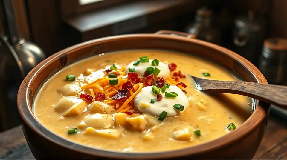 - Serve and Garnish: Ladle the chowder into bowls and top with your choice of bacon bits, green onions, extra cheddar, and a dollop of sour cream for added creaminess.