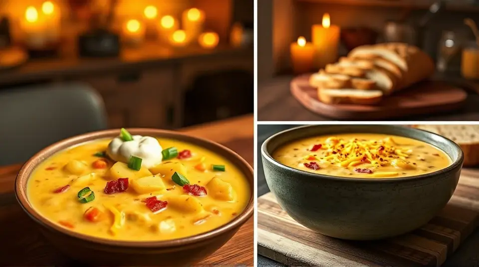 # Creamy Cheddar Potato Chowder 🥔🧀 This luscious cheddar potato chowder is a comforting bowl of goodness that's perfect for chilly days! Bursting with flavor and creamy texture, it’s rich, filling, and can easily be customized to suit your preferences. Serve it up with crusty bread for dipping, or enjoy it on its own for a satisfying meal! ## Ingredients ### For the chowder - 4 large potatoes, peeled and diced - 1 medium onion, chopped - 2 carrots, diced - 2 stalks of celery, diced - 3 cloves of garlic, minced - 4 cups of vegetable or chicken broth - 1 cup of heavy cream - 2 cups shredded sharp cheddar cheese - 2 tablespoons olive oil - 1 tablespoon fresh thyme (or 1 teaspoon dried thyme) - Salt and pepper to taste ### For the toppings - Cooked bacon bits (optional) - Chopped green onions - Extra shredded cheddar cheese - A dollop of sour cream ## Instructions 1. **Sauté the Vegetables**: In a large pot, heat the olive oil over medium heat. Add the onions, carrots, and celery. Sauté until the vegetables are tender, about 5-7 minutes. Stir in the garlic and thyme, cooking for an additional minute until fragrant. 2. **Add Potatoes and Broth**: Add the diced potatoes to the pot and pour in the broth. Bring to a boil, then reduce the heat to a simmer. Cover and let cook for about 15-20 minutes, or until the potatoes are tender. > 🔥 Keep the pot partially covered to prevent over-spilling while boiling. This helps maintain a steady simmer, which is crucial for cooking the potatoes evenly. 3. **Blend for Creaminess**: Once the potatoes are tender, use an immersion blender to puree part of the chowder, leaving some chunks for texture (or transfer to a blender in batches). Stir in the heavy cream and bring back to a gentle simmer. 4. **Cheesy Goodness**: Remove the pot from heat and gradually stir in the shredded cheddar cheese until smooth. Season with salt and pepper to taste. > 🧀 For an extra cheesy experience, consider using a combination of cheeses like Gruyère or Monterey Jack alongside cheddar! 5. **Serve and Garnish**: Ladle the chowder into bowls and top with your choice of bacon bits, green onions, extra cheddar, and a dollop of sour cream for added creaminess. ## Variations - **Vegan**: Substitute the heavy cream with coconut cream and use plant-based cheese to keep it dairy-free while maintaining that creamy texture. - **Spicy**: Add a chopped jalapeño or a pinch of cayenne pepper for heat. You could also mix in some diced tomatoes for a kick! - **Additional Veggies**: Toss in some corn or frozen peas for added sweetness and color—both work wonderfully in this chowder. - **Herb-Infused**: Try adding fresh parsley or dill as a finishing touch to enhance the flavor profile. This cheddar potato chowder is versatile and can be made ahead of time. Reheat gently on the stove when ready to serve—it's comfort food you will crave again and again! 🍽️🥄name