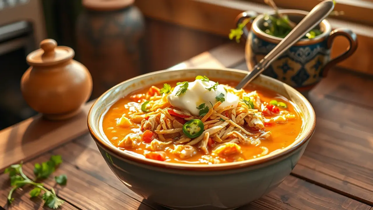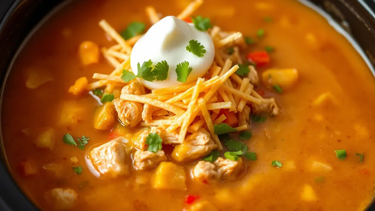 # Slow Cooker King Ranch Chicken Soup 🍲🧑🍳 This hearty and flavorful soup combines the classic elements of King Ranch casserole with the convenience of a slow cooker. Perfect for cozy dinners, game day, or when you need a comforting dish, this recipe captures the essence of Tex-Mex cuisine with tender chicken, vibrant veggies, and a touch of spice. Pair it with tortilla chips or a dollop of sour cream for a complete meal! 🌶️🧀 ## Ingredients ### For the soup base - 1 lb boneless, skinless chicken breasts - 1 can (10 oz) cream of mushroom soup - 1 can (10 oz) diced tomatoes with green chiles - 1 can (15 oz) black beans, rinsed and drained - 1 cup corn (fresh, frozen, or canned) - 1 medium onion, diced - 1 bell pepper (any color), diced - 2 cloves garlic, minced - 3 cups chicken broth - 2 tsp chili powder - 1 tsp cumin - 1/2 tsp smoked paprika - Salt and pepper to taste ### For garnishing - 1 cup shredded cheese (cheddar or Mexican blend) - Fresh cilantro, chopped - Sour cream or Greek yogurt - Tortilla strips or crushed tortilla chips ## Instructions - In your slow cooker, place the chicken breasts at the bottom. Add in the cream of mushroom soup, diced tomatoes, black beans, corn, diced onion, diced bell pepper, minced garlic, chicken broth, chili powder, cumin, smoked paprika, salt, and pepper. Stir gently to combine. > 🔥 For a little extra heat, you can add a chopped jalapeño or a dash of hot sauce! - Cover the slow cooker and set it to low for 6-8 hours or high for 3-4 hours, until the chicken is cooked through and tender. - About 30 minutes before serving, shred the chicken directly in the slow cooker using two forks and stir to combine it with the soup. > 🥄 If you like your soup to be thicker, you can mash some of the black beans with a fork before stirring! - Once ready, ladle the soup into bowls and top with a generous sprinkle of shredded cheese, fresh cilantro, a dollop of sour cream, and tortilla strips or crushed chips for crunch. ## Variations - **Spicy**: Add extra diced jalapeños or a teaspoon of cayenne pepper for a spicier kick. 🔥 - **Vegetarian**: Substitute the chicken with an extra can of beans or chickpeas and use vegetable broth instead. - **Low-carb**: Skip the black beans and corn and add more veggies like zucchini or cauliflower for a delicious low-carb option. - **Creamy version**: Stir in half a cup of heavy cream or sour cream at the end for a richer, creamier soup. >> 🥦 Consider loading your soup with even more vegetables, like carrots or kale, to boost the nutrients without compromising the flavor! Enjoy this delightful Slow Cooker King Ranch Chicken Soup, perfect for warming up on chilly nights! 🌟🥘name