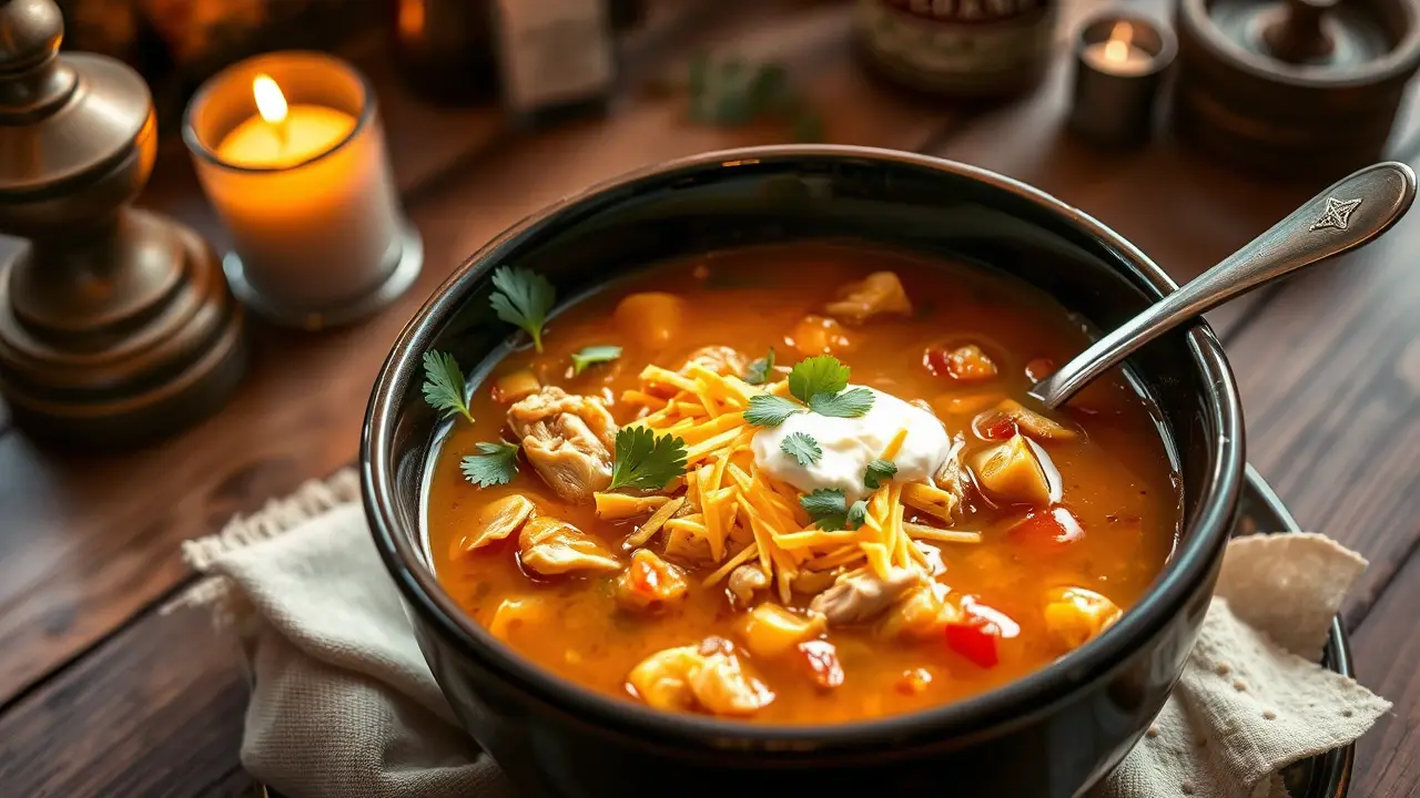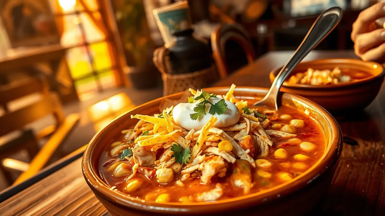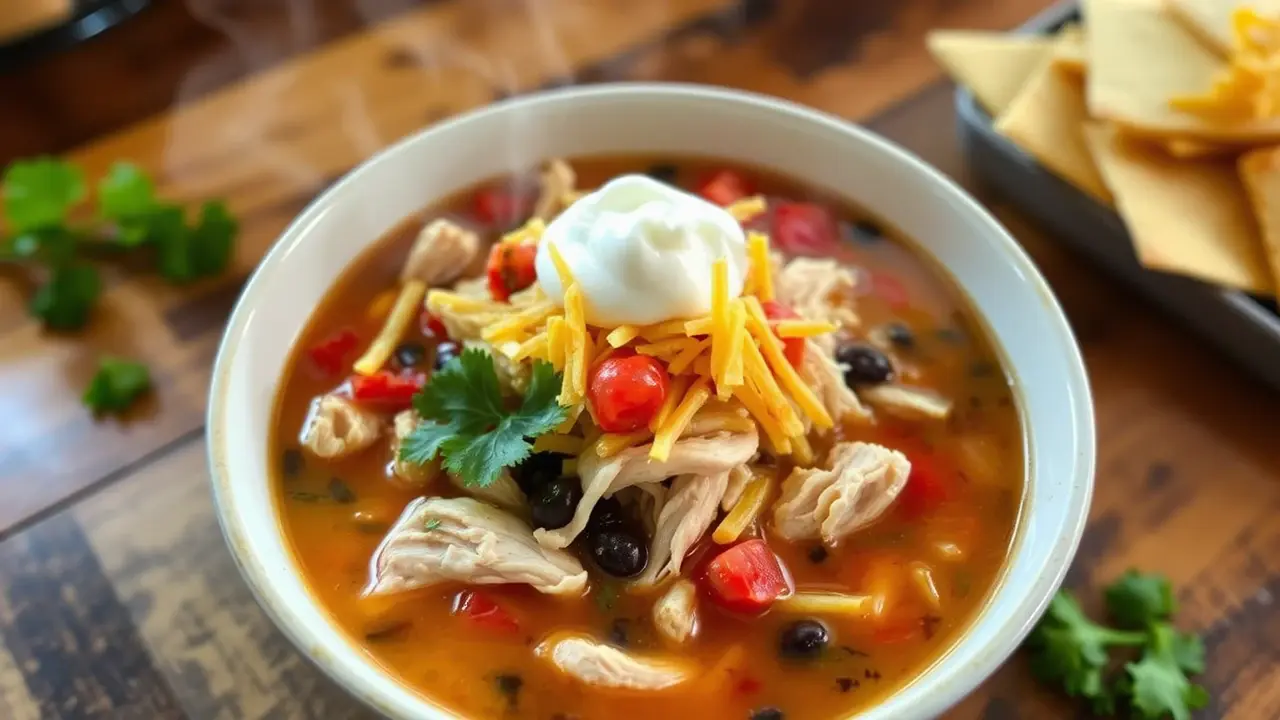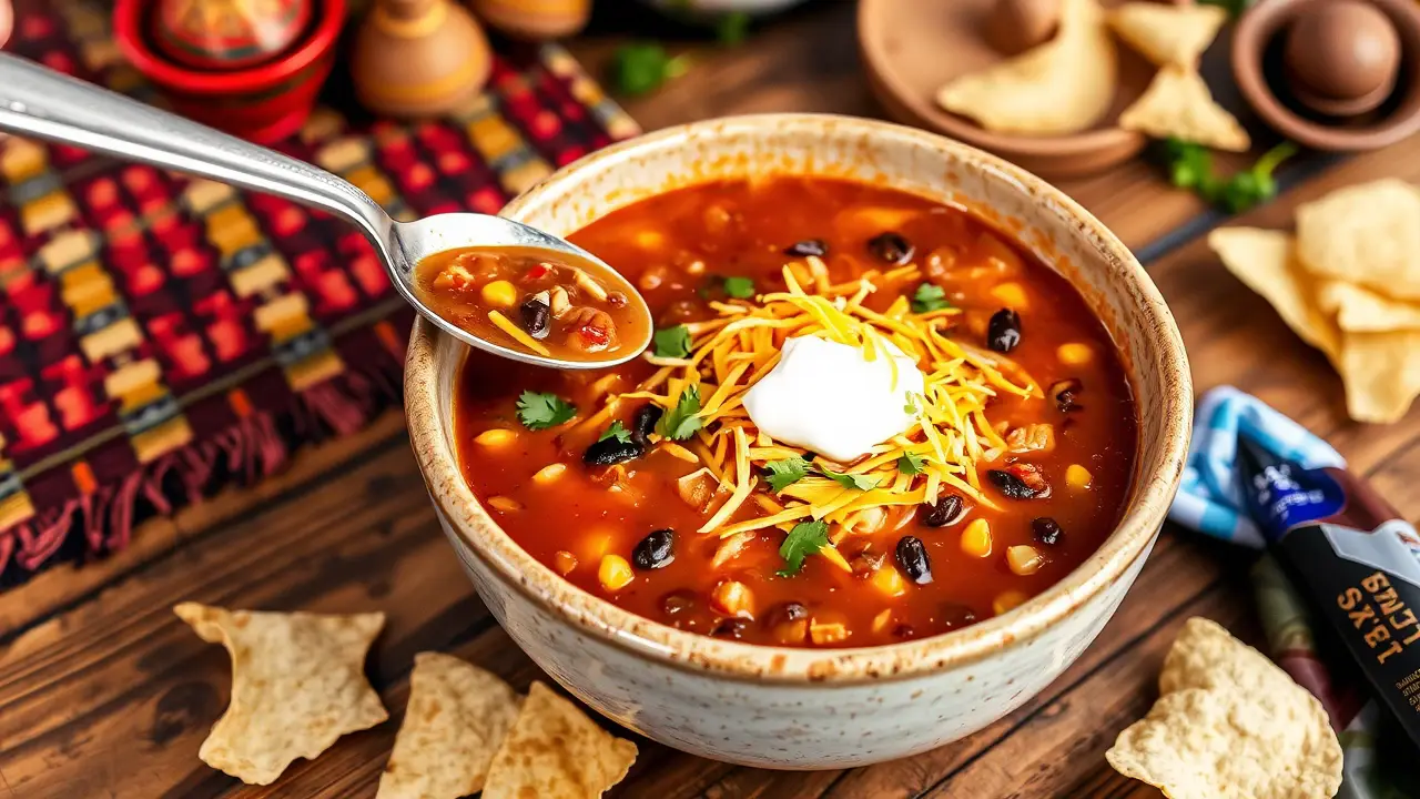 - Once ready, ladle the soup into bowls and top with a generous sprinkle of shredded cheese, fresh cilantro, a dollop of sour cream, and tortilla strips or crushed chips for crunch.