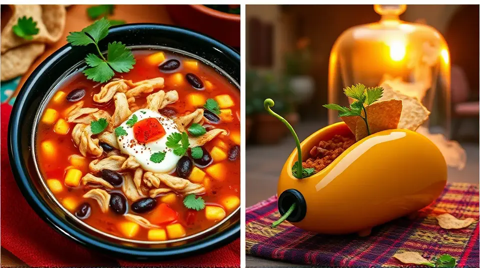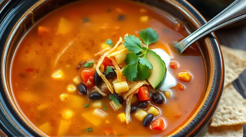 # Cozy Slow Cooker Chicken Taco Soup 🌮🍲 This delightful bowl of comfort is perfect for busy weeknights or lazy weekends! The Slow Cooker Chicken Taco Soup is shaped by a medley of spices, tender chicken, and a fiesta of vegetables, making it a hearty meal full of flavor that can be served alone or with your favorite toppings. ## Ingredients ### For the soup base - 1 lb boneless, skinless chicken breasts - 1 can (15 oz) black beans, drained and rinsed - 1 can (15 oz) corn (sweet or fire-roasted for a kick), drained - 1 can (14.5 oz) diced tomatoes with green chilies - 1 medium onion, diced - 2 cloves garlic, minced - 1 cup chicken broth - 1 packet taco seasoning (or homemade blend: chili powder, cumin, paprika, and a pinch of cayenne) ### For the toppings - Fresh cilantro, chopped - Sliced avocado - Shredded cheese (cheddar or Mexican blend) - Sour cream or Greek yogurt - Tortilla chips or strips ## Instructions - Place the chicken breasts at the bottom of your slow cooker. - Add in the black beans, corn, diced tomatoes (with their juice), onion, garlic, chicken broth, and taco seasoning. Stir to combine everything well. > 🥄 Make sure the chicken is mostly submerged in the liquid for optimal cooking! The flavors will meld beautifully as the soup simmers away. - Cover and cook on low for 6-8 hours or on high for 3-4 hours, until the chicken is cooked through and shred easily. - Once cooked, use two forks to shred the chicken directly in the slow cooker, mixing it into the soup. > 🌶️ For an extra kick, consider adding sliced jalapeños or a splash of hot sauce before serving! - Serve hot, and let each person add their desired toppings. Enjoy! > 💡 The beauty of this soup is that it's versatile! Feel free to toss in any other vegetables you enjoy, such as bell peppers or zucchini. ## Variations - **Spicy**: Add extra chipotle peppers in adobo sauce for a smoky heat, or sprinkle crushed red pepper flakes. - **Vegetarian/Vegan**: Replace chicken with extra beans or lentils and use vegetable broth for a plant-based option. - **Creamy**: Stir in a dollop of cream cheese or a splash of heavy cream towards the end of cooking for a richer soup. - **Low-carb/Keto**: Omit the beans and corn for a lower-carb version, adding more veggies like diced zucchini or cauliflower. Enjoy a warm bowl of this slow cooker soup on a chilly day, and let the flavors transport you to your favorite taco stand! 🍽️✨name