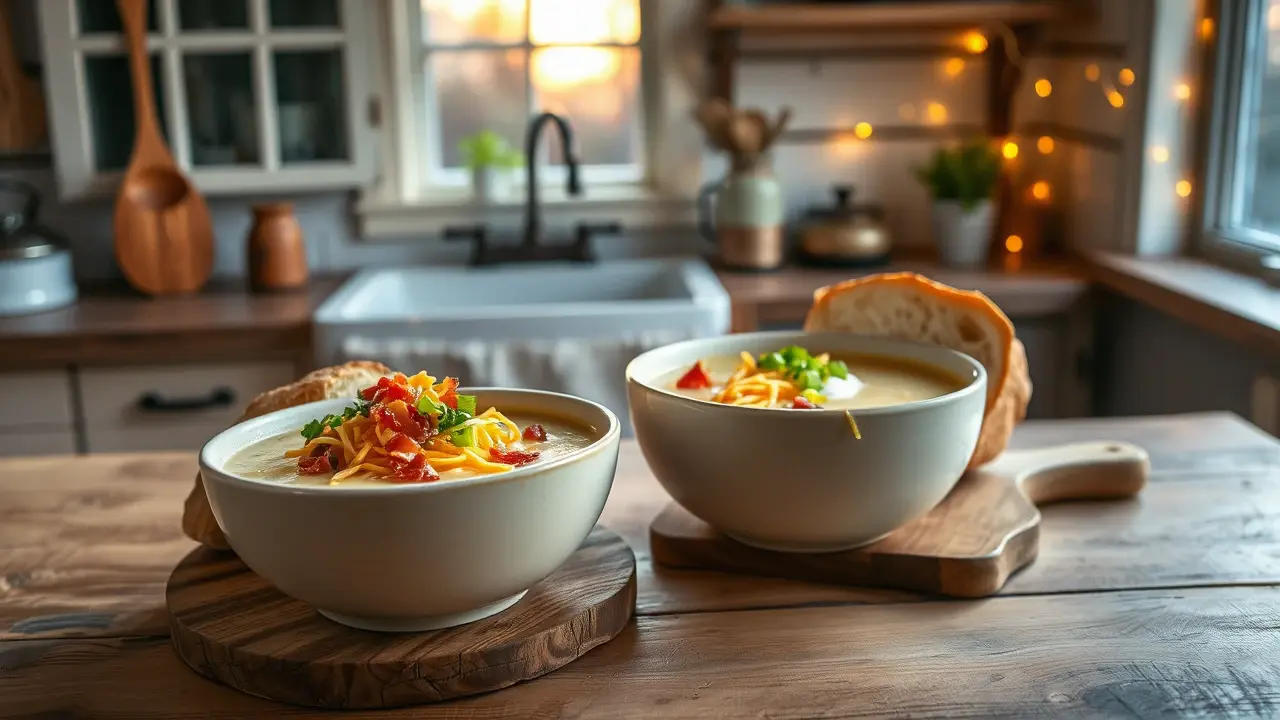 - Loaded Baked Potato Style: Top the soup with extra cheese, crispy bacon bits, and a dollop of sour cream. Add a sprinkle of smoked paprika for an extra kick!