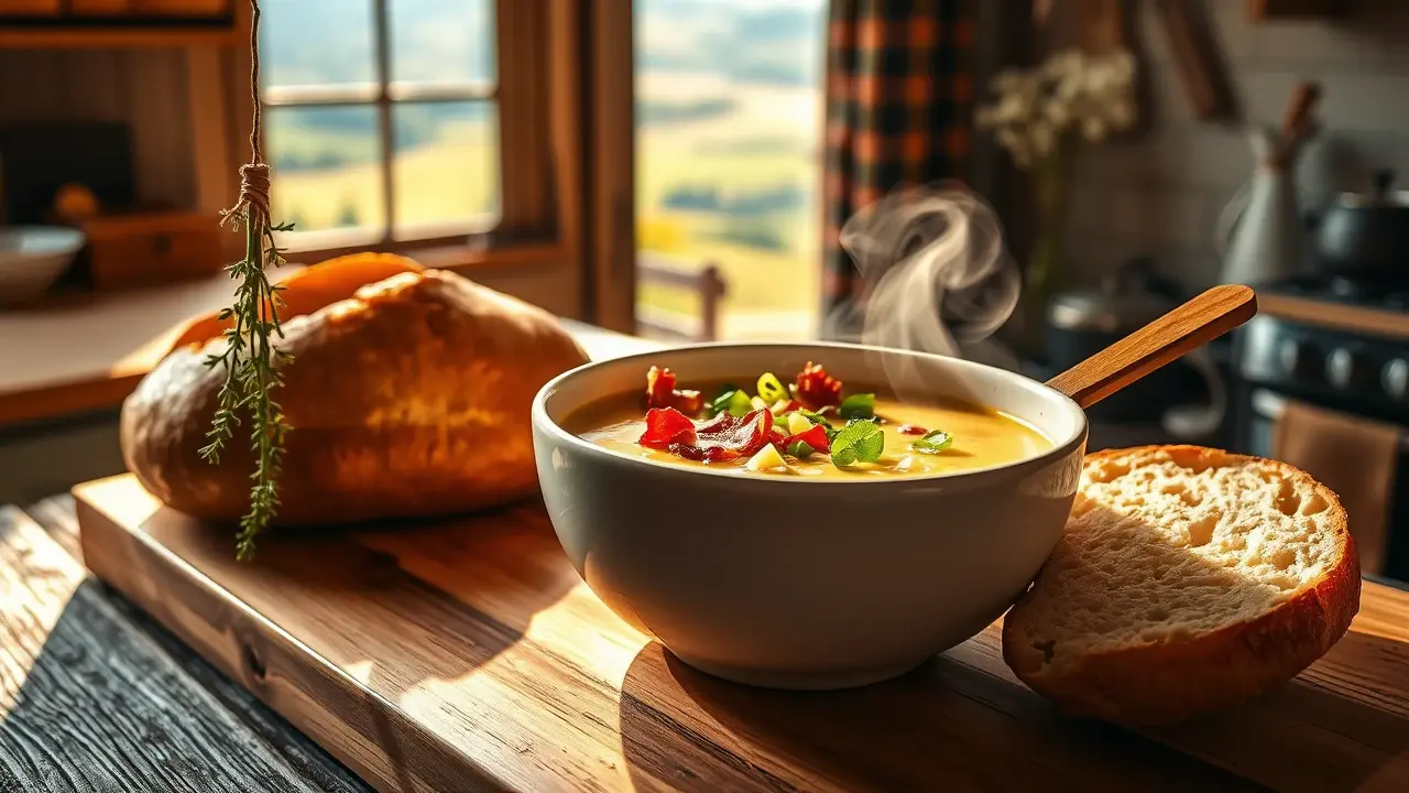 # Hearty Potato Soup 🥔🍲 This comforting and creamy potato soup is the ultimate cozy dish for chilly days. Packed with flavor and nutrients, it’s not only filling but also highly customizable! With a sprinkle of fresh herbs and a drizzle of olive oil, this soup warms you from the inside out. Pair it with crusty bread or a fresh salad for a complete meal! 🍞🥗 ## Ingredients ### For the soup base - 4 large russet potatoes, peeled and diced - 1 medium onion, chopped - 3 cloves of garlic, minced - 4 cups vegetable or chicken broth - 1 cup heavy cream - 2 tablespoons olive oil - Salt and pepper to taste ### For the add-ins - 1 cup cooked bacon, crumbled (or use a plant-based alternative for a vegetarian option) - 1 cup shredded cheddar cheese - 1/2 cup sour cream (optional) - Chopped green onions and fresh parsley for garnish ## Instructions 1. **Sauté the onion and garlic**: In a large pot, heat olive oil over medium heat. Add the chopped onion and sauté until translucent, about 5 minutes. Stir in the minced garlic and cook for an additional 1-2 minutes until fragrant. 2. **Cook the potatoes**: Add the diced potatoes and broth to the pot. Bring to a boil, then reduce to a simmer and cook until the potatoes are fork-tender, about 15-20 minutes. 3. **Blend or mash**: Once cooked, you can blend the soup for a creamier texture using an immersion blender or regular blender. If you prefer some chunky pieces, simply mash the potatoes in the pot with a potato masher, leaving some intact. 4. **Add cream and season**: Stir in the heavy cream, and season with salt and pepper to taste. Allow the soup to simmer for another 5 minutes to combine all the flavors. 5. **Serve**: Ladle the soup into bowls and top with crumbled bacon, shredded cheddar cheese, and a dollop of sour cream if desired. Finish with chopped green onions and fresh parsley. > 🌿 Feel free to adjust the consistency of the soup by adding more broth if you prefer a thinner soup, or letting it simmer longer to thicken. ## Variations - **Vegan**: Replace heavy cream with coconut milk or cashew cream, use vegetable broth, and skip the bacon or substitute with vegan bacon. - **Loaded Baked Potato Style**: Top the soup with extra cheese, crispy bacon bits, and a dollop of sour cream. Add a sprinkle of smoked paprika for an extra kick! - **Spicy Kick**: Add chopped jalapeños or a dash of hot sauce to the soup for some warmth. - **Herb-Infused**: Incorporate fresh herbs like thyme or rosemary while cooking the potatoes for added flavor. Enjoy your hearty potato soup with loved ones and embrace the warmth it brings! 🥰🍽️name