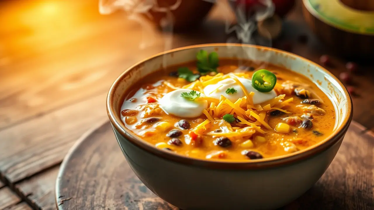 # Creamy Cheese Chicken Enchilada Soup 🥣🧀 This hearty and comforting soup is packed with flavor and cheesy goodness. Perfect for those chilly nights or any time you crave a warm bowl of deliciousness! With tender chicken, zesty enchilada sauce, and hints of spice, this soup is a sure-fire crowd-pleaser that can be ready in under 30 minutes. Consider serving it with crispy tortilla chips or a dollop of sour cream for an added touch of creaminess. 🍲🌶️ ## Ingredients ### For the soup base - 1 tablespoon olive oil - 1 onion, diced - 3 cloves garlic, minced - 1 pound cooked chicken breast, shredded (rotisserie chicken works great!) - 4 cups chicken broth - 1 can (15 oz) diced tomatoes with green chiles - 1 can (10 oz) enchilada sauce - 1 can (15 oz) black beans, rinsed and drained - 1 cup corn (fresh or frozen) - 1 teaspoon ground cumin - 1 teaspoon chili powder - Salt and pepper to taste ### For the cheesy finish - 1 cup shredded cheddar cheese (or a mix of cheeses for extra flavor) - 1/2 cup cream cheese, softened - Fresh cilantro, for garnish - Optional toppings: diced avocado, sour cream, jalapeños, lime wedges ## Instructions - In a large pot, heat the olive oil over medium heat. Add the diced onion and sauté until translucent, about 5 minutes. - Add the minced garlic and cook for an additional minute, stirring frequently. > 🥄 Remember to keep an eye on the garlic. It can burn quickly and impart a bitter flavor to your soup! - Stir in the shredded chicken, chicken broth, diced tomatoes with green chiles, enchilada sauce, black beans, corn, cumin, chili powder, salt, and pepper. Bring to a boil and then reduce the heat to low. Let it simmer for about 10 minutes to allow the flavors to meld. - While the soup is simmering, slowly stir in the cream cheese until melted and fully incorporated. Then, add the shredded cheese, stirring until gooey and smooth. > 🧀 For an extra cheesy delight, you can sprinkle some cheese on top and let it melt under a broiler for a few minutes before serving! - Ladle the soup into bowls and garnish with fresh cilantro and your choice of toppings. ## Variations - **Spicy**: Add diced jalapeños or a few dashes of hot sauce for an extra kick. 🌶️ - **Vegetarian**: Replace the chicken with sautéed bell peppers and mushrooms for a hearty veggie version. - **Low-carb**: Substitute black beans with additional veggies like zucchini or cauliflower rice. - **Extra creamy**: Incorporate a swirl of heavy cream or half-and-half at the end for a richer soup texture. Enjoy your delightful bowls of Cheese Chicken Enchilada Soup, and let the flavors transport you straight to a cozy Mexican fiesta! 🎉🧄name