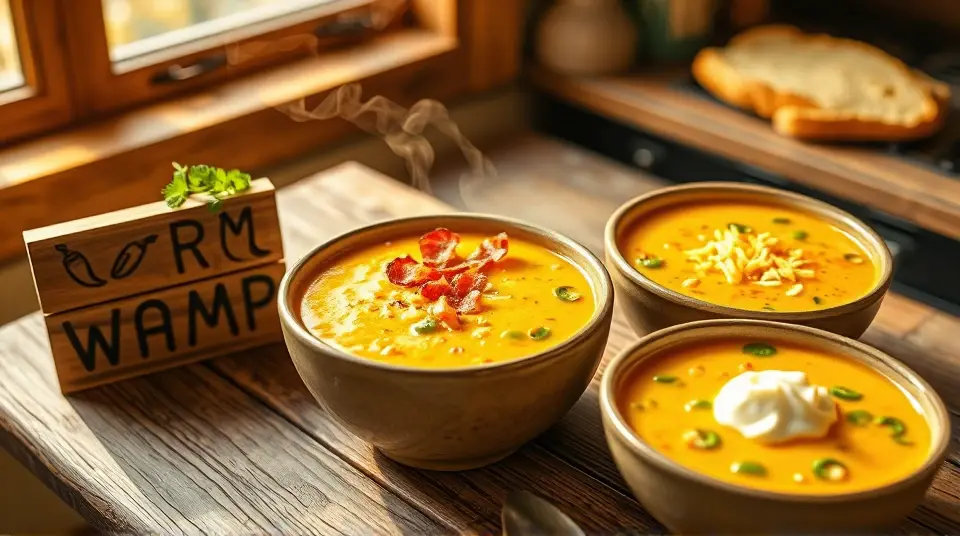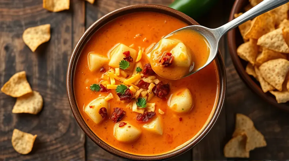Serve: Ladle the soup into bowls and top with chopped bacon (if you used it), extra cheddar cheese, green onions, a dollop of sour cream, and crunchy tortilla chips.