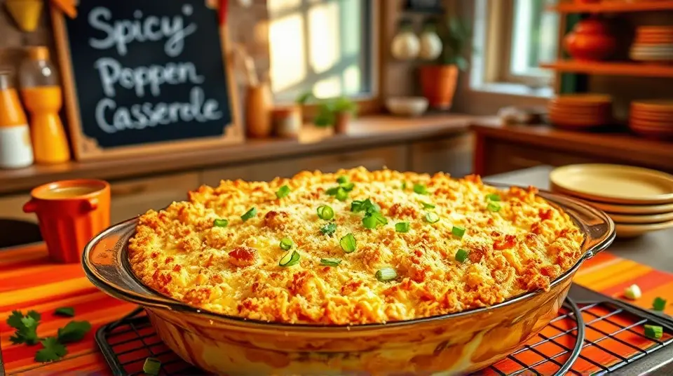 # Spicy Jalapeño Popper Baked Chicken Casserole 🌶️🍗 This comforting casserole takes the beloved flavors of jalapeño poppers and transforms them into a hearty and creamy dish. It features tender chicken, a cheesy and spicy filling, and a crispy topping that will have your taste buds dancing! Perfect for weeknight dinners or gatherings with friends, this recipe is sure to impress. Pair it with a side of Mexican rice or a fresh salad for a complete meal! 🥗💃 ## Ingredients ### For the casserole - 2 cups cooked chicken, shredded (rotisserie chicken works great!) - 1 cup cream cheese, softened - 1 cup shredded cheddar cheese - 1 cup shredded mozzarella cheese - 1/2 cup sour cream - 1/2 cup chopped fresh jalapeños (adjust based on your spice preference) - 1/4 cup chopped green onions - 1 tablespoon garlic powder - 1 teaspoon onion powder - 1 teaspoon smoked paprika - Salt and pepper to taste - 4 cups cooked rice (white or brown) ### For the topping - 1 cup panko breadcrumbs - 1/4 cup Parmesan cheese, grated - 2 tablespoons melted butter - 1 teaspoon garlic powder - 1/2 teaspoon paprika ## Instructions 1. Preheat your oven to 375°F (190°C) and lightly grease a 9x13 inch baking dish. 2. In a large mixing bowl, combine the cream cheese, shredded chicken, sour cream, chopped jalapeños, green onions, garlic powder, onion powder, smoked paprika, salt, and pepper. Mix until well combined. > 🥄 Ensure that the cream cheese is softened for easy mixing—remove it from the fridge about 30 minutes before you start! 3. Stir in the cooked rice and half of the cheddar and mozzarella cheeses into the chicken mixture until everything is evenly incorporated. 4. Transfer the mixture into the prepared baking dish, spreading it out evenly. 5. In a separate bowl, mix the panko breadcrumbs, Parmesan cheese, melted butter, garlic powder, and paprika together until the breadcrumbs are well coated. 6. Sprinkle the breadcrumb mixture evenly over the chicken casserole, then top with the remaining cheddar and mozzarella cheeses. 7. Bake in the preheated oven for 25-30 minutes, or until the casserole is bubbly and the top is golden brown. 8. Let it cool for about 5 minutes before serving. > 🍽️ Garnish with additional chopped green onions or a dollop of salsa for an extra kick! ## Variations - **Low-carb/Keto**: Substitute the rice with cauliflower rice for a lower-carb option. Just sauté the cauliflower rice first to remove excess moisture. - **Vegetarian**: Replace the chicken with black beans or chickpeas, and add in diced bell peppers for added flavor and texture. - **Extra cheesy**: For cheese lovers, feel free to add more types of cheese like pepper jack or cream cheese dollops for added creaminess. - **Spicy level**: If you want an extra spicy kick, include diced jalapeño seeds or top with sliced fresh jalapeños before baking. Enjoy this spicy, creamy delight at your next meal, and watch as everyone comes back for seconds! 🍽️🌶️name