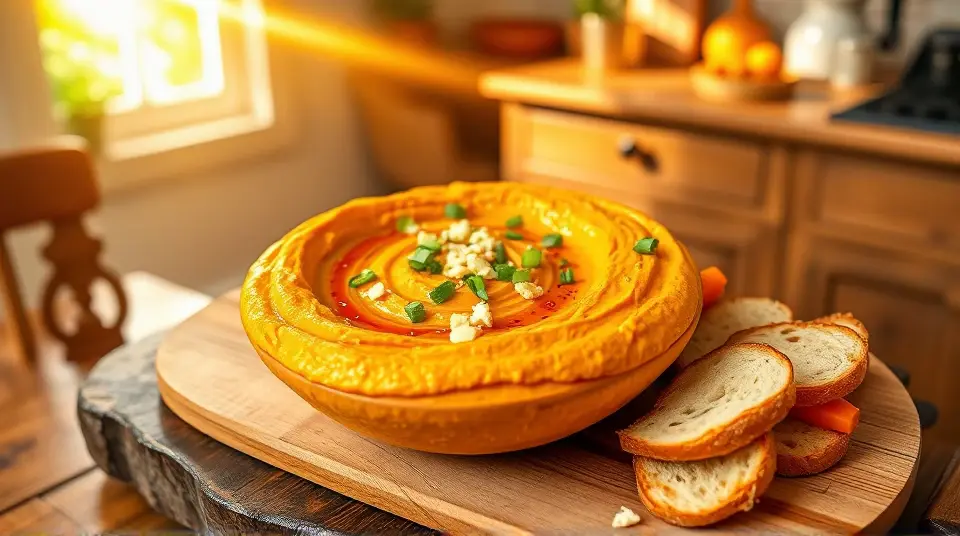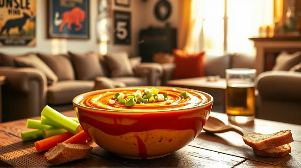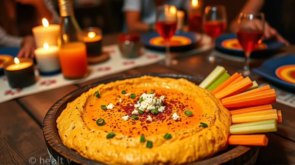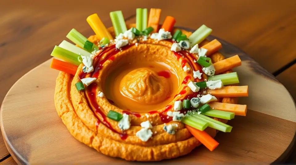 # Spicy Hot Buffalo Wing Hummus 🌶️🍗 This vibrant and zesty twist on traditional hummus is perfect for parties, game days, or a cozy night in! Combining the creamy goodness of classic hummus with the fiery flavor of buffalo wings, this recipe is sure to impress your friends and family. Serve it as a dip with veggies, pita chips, or even as a spread on sandwiches! ## Ingredients ### For the hummus - 1 can (15 oz) of chickpeas, drained and rinsed - 1/4 cup of tahini - 1/4 cup of buffalo hot sauce (adjust to taste) - 2 tablespoons of olive oil - 2 tablespoons of lemon juice - 1 garlic clove, minced - 1/2 teaspoon of smoked paprika - Salt and pepper to taste - Water, as needed to reach desired consistency ### For the garnish - Chopped green onions - Crumbled blue cheese (optional) - Extra buffalo hot sauce - Sliced celery and carrot sticks for serving ## Instructions - In a food processor, combine the chickpeas, tahini, buffalo hot sauce, olive oil, lemon juice, minced garlic, smoked paprika, salt, and pepper. > 🥄 For an extra smooth consistency, you can peel the chickpeas before blending, but this step is optional. - Blend until everything is well combined, scraping down the sides as necessary. Gradually add water, one tablespoon at a time, until you reach your desired consistency. - Taste and adjust the seasoning by adding more hot sauce, lemon juice, or salt as needed. - Transfer the hummus to a serving bowl and create a small well in the center. Drizzle a bit of olive oil and extra buffalo hot sauce over the top, then sprinkle with chopped green onions and crumbled blue cheese, if using. > 🧊 This hummus can be made ahead of time! Simply cover it tightly and refrigerate for up to 3 days. The flavors will deepen, making it even more delicious! ## Variations - **Creamy Avocado**: Add 1 ripe avocado to the blender for a silky texture and a hint of creaminess. - **Dairy-Free**: Skip the blue cheese for a wholesome vegan option! You can also use nutritional yeast for a cheesy flavor. - **Smoky**: Add a teaspoon of liquid smoke for a deeper, barbecue-like flavor. - **Heat Level**: For a milder version, substitute half the buffalo sauce with ranch dressing or yogurt for a cool twist. Pair this Hot Buffalo Wing Hummus with your favorite dippers or spread it on a sandwich for an extra spicy kick. Enjoy the perfect harmony of creamy, tangy, and spicy flavors in every bite! 🌟🥒name