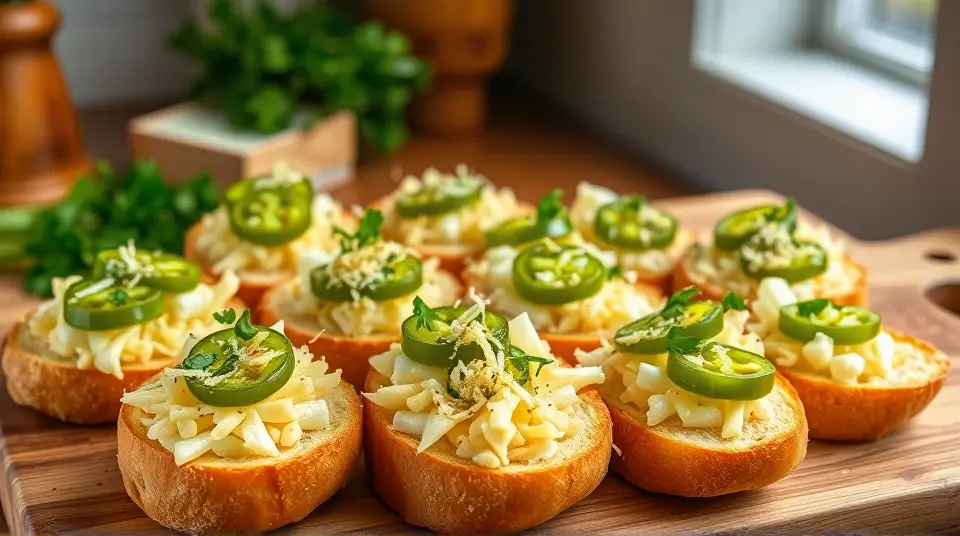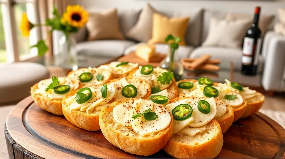 These scrumptious appetizers combine the perfect blend of spicy jalapeños, creamy mozzarella, and buttery garlic goodness, all on a crispy baguette. They make an excellent starter for any gathering or a delightful snack to enjoy at home! Your guests will be begging for more of these bite-sized delights!