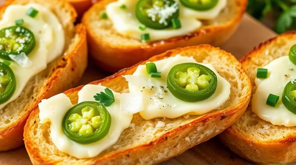 # Jalapeno and Mozzarella Buttery Garlic Bread Appetizers 🌶️🧀 These scrumptious appetizers combine the perfect blend of spicy jalapeños, creamy mozzarella, and buttery garlic goodness, all on a crispy baguette. They make an excellent starter for any gathering or a delightful snack to enjoy at home! Your guests will be begging for more of these bite-sized delights! ## Ingredients ### For the garlic butter spread - 1/2 cup unsalted butter, softened - 4 cloves garlic, minced - 1 teaspoon dried oregano - 1 teaspoon dried parsley - 1/2 teaspoon salt - 1/2 teaspoon black pepper ### For the appetizers - 1 large baguette or Italian loaf - 1 cup shredded mozzarella cheese - 1-2 fresh jalapeños, sliced (seeds removed for less heat) - 1/4 cup grated Parmesan cheese - Fresh parsley or cilantro for garnish ## Instructions 1. **Prepare the garlic butter**: In a bowl, mix the softened butter, minced garlic, oregano, parsley, salt, and pepper until well combined. > 🧄 Feel free to adjust the garlic to your preference—more for a bolder flavor or less if you prefer a milder touch! 2. **Preheat your oven**: Preheat your oven to 375°F (190°C). 3. **Slice the baguette**: Cut the baguette in half lengthwise, then slice each half into smaller pieces for individual appetizers (about 2-3 inches each). 4. **Spread the garlic butter**: Generously spread the garlic butter mixture on each piece of baguette. 5. **Add the toppings**: Sprinkle shredded mozzarella cheese over each piece, and then top with sliced jalapeños. Finish with a sprinkle of grated Parmesan cheese. 6. **Bake to perfection**: Place the prepared bread on a baking sheet and bake in the preheated oven for about 12-15 minutes, or until the cheese is bubbly and the edges of the bread are golden brown. 7. **Garnish and serve**: Remove from the oven, let cool slightly, and garnish with fresh parsley or cilantro before serving. > 🌱 This garnish adds a touch of freshness that perfectly complements the rich, buttery bread! ## Variations - **Dairy-free**: Substitute the butter with a dairy-free spread and use vegan cheese for a delicious plant-based version! 🌿 - **Extra spicy**: Add chopped pickled jalapeños or a drizzle of sriracha on top for an extra kick! 🔥 - **Herb-infused**: Experiment by adding fresh herbs like basil or thyme into the garlic butter for a different flavor profile! 🌿 - **Cheese lover**: Mix different types of cheese like cheddar or pepper jack to enhance the flavor and texture! 🧀 These Jalapeno and Mozzarella Buttery Garlic Bread Appetizers are sure to impress—don’t be surprised if they disappear in no time! Enjoy!name
