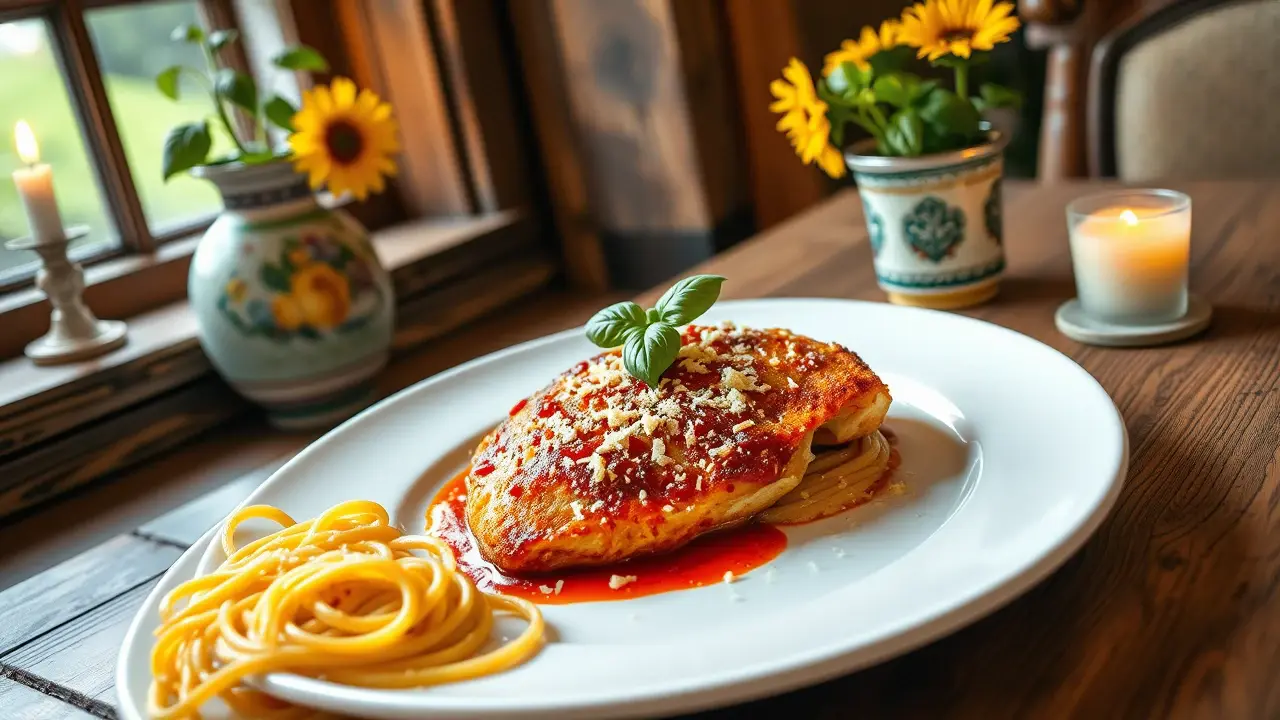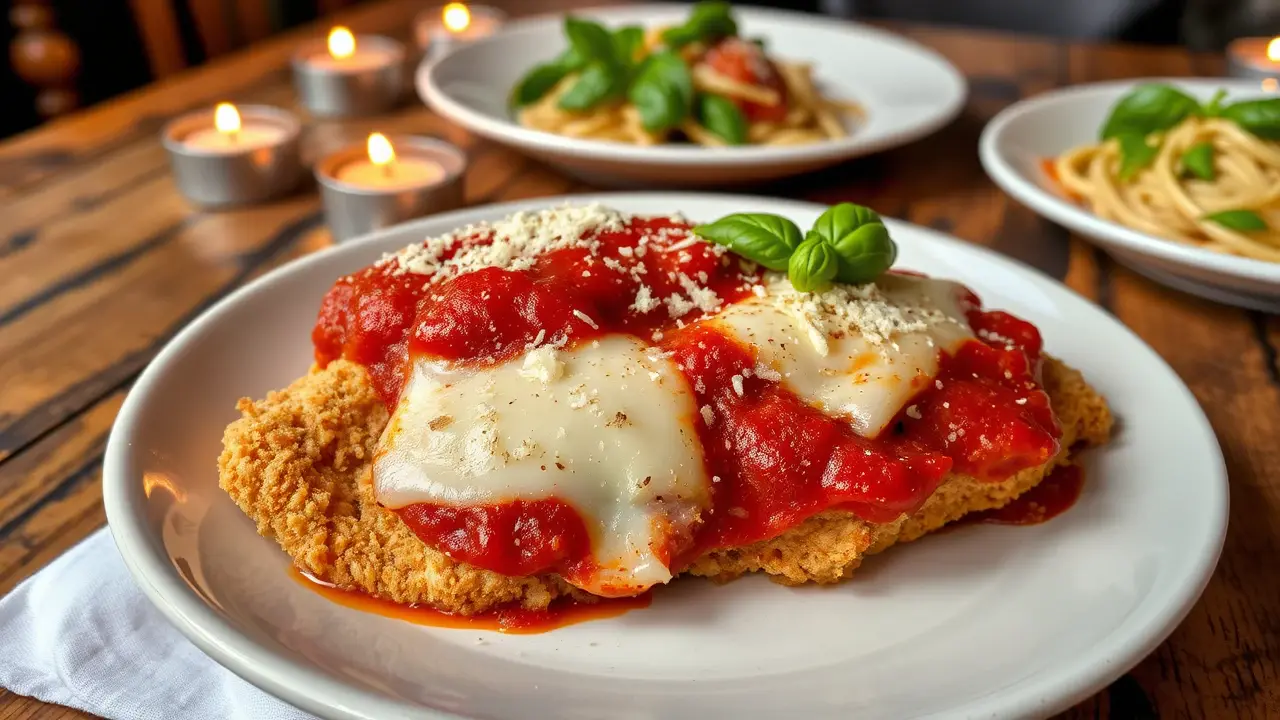 # Easy Chicken Parmesan 🍗🍝 This is a quick and straightforward recipe for Chicken Parmesan, which is a family favorite! With crispy chicken, tangy marinara sauce, and melted cheese, it’s a comfort dish that’s perfect for busy weeknights or casual weekend dinners. Pair it with a side of spaghetti or a fresh salad for a complete meal! 🍽️✨ ## Ingredients ### For the Chicken - 2 boneless, skinless chicken breasts - 1 cup of breadcrumbs (Panko for extra crunch) - 1/2 cup of grated Parmesan cheese - 1 teaspoon of Italian seasoning (or a mix of oregano and basil) - 1 teaspoon of garlic powder - Salt and pepper to taste - 1/2 cup of all-purpose flour - 2 large eggs, beaten - Olive oil for frying ### For the Sauce and Toppings - 1 cup of marinara sauce (store-bought or homemade) - 1 cup of shredded mozzarella cheese - Fresh basil leaves (for garnish) ## Instructions 1. Preheat your oven to 400°F (200°C). 2. **Prepare the Chicken**: - Trim the chicken breasts and place them between two sheets of plastic wrap. Pound them to an even thickness (about 1/2 inch) using a meat mallet. This helps them cook evenly. 3. **Season and Coat**: - Set up a breading station: in one bowl, place the flour seasoned with salt and pepper; in the second, the beaten eggs; and in the third, mix the breadcrumbs, grated Parmesan, Italian seasoning, and garlic powder. - Dredge each chicken breast in flour, dip in the egg, and finally coat it with the breadcrumb mixture, pressing it gently to adhere. 4. **Pan-Fry**: - In a large skillet, heat olive oil over medium heat. Once hot, carefully add the breaded chicken breasts and cook for about 3-4 minutes on each side until golden brown. You may need to do this in batches. 5. **Prepare for Baking**: - Once the chicken is browned, place them in a baking dish. Spoon marinara sauce generously over each breast and top with shredded mozzarella cheese. 6. **Bake**: - Bake in the preheated oven for about 15-20 minutes, or until the cheese is bubbly and the chicken is cooked through (internal temperature should reach 165°F/75°C). 7. **Serve and Enjoy**: - Once baked, let the Chicken Parmesan rest for a few minutes. Garnish with fresh basil leaves and serve with pasta or a fresh salad. > 🍝 For a delicious twist, sprinkle additional Parmesan on top before baking for a deeper flavor. ## Variations - **Spicy Kick**: Add red pepper flakes to the breadcrumb mixture for a bit of heat! 🔥 - **Gluten-free**: Substitute the breadcrumbs with crushed gluten-free crackers or almond flour. - **Baked Option**: Skip the frying step and bake the breaded chicken at 375°F (190°C) for 20-25 minutes until crispy. - **Cheese Lovers**: Mix in other cheeses like provolone or fontina for a gourmet touch! Enjoy your Easy Chicken Parmesan, and watch it become a new family favorite! 🥳🍽️name