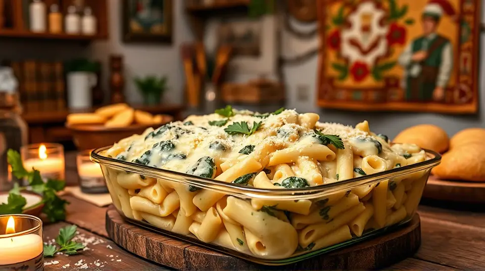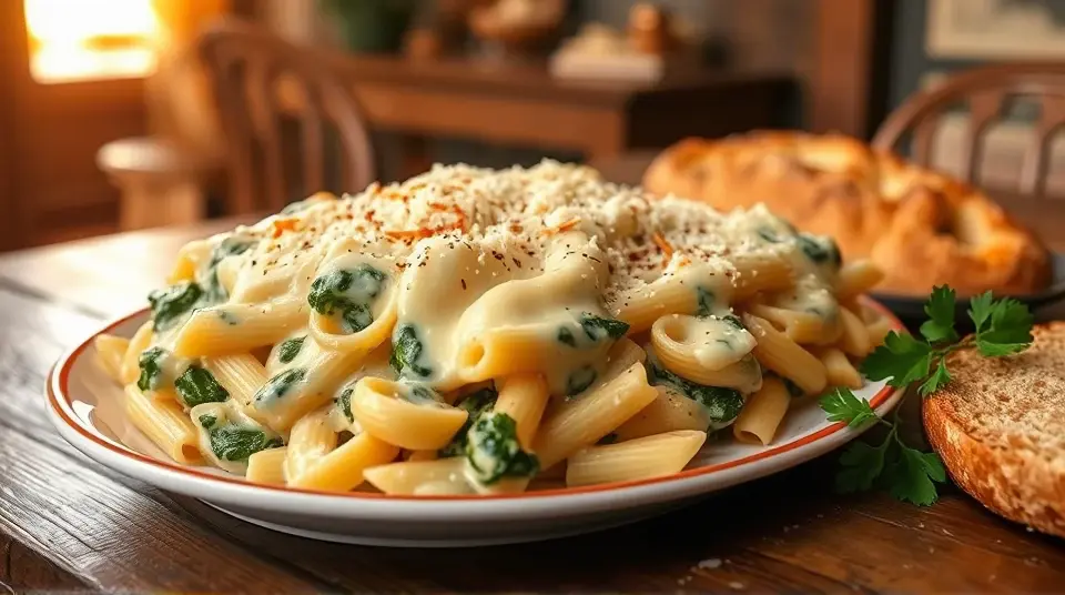 Spinach Alfredo Baked Ziti 🍝🧀