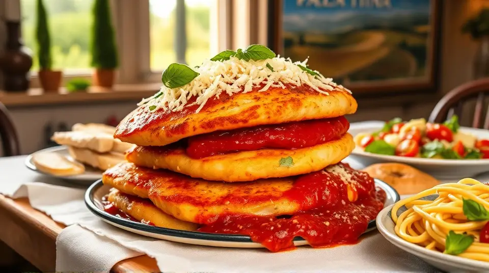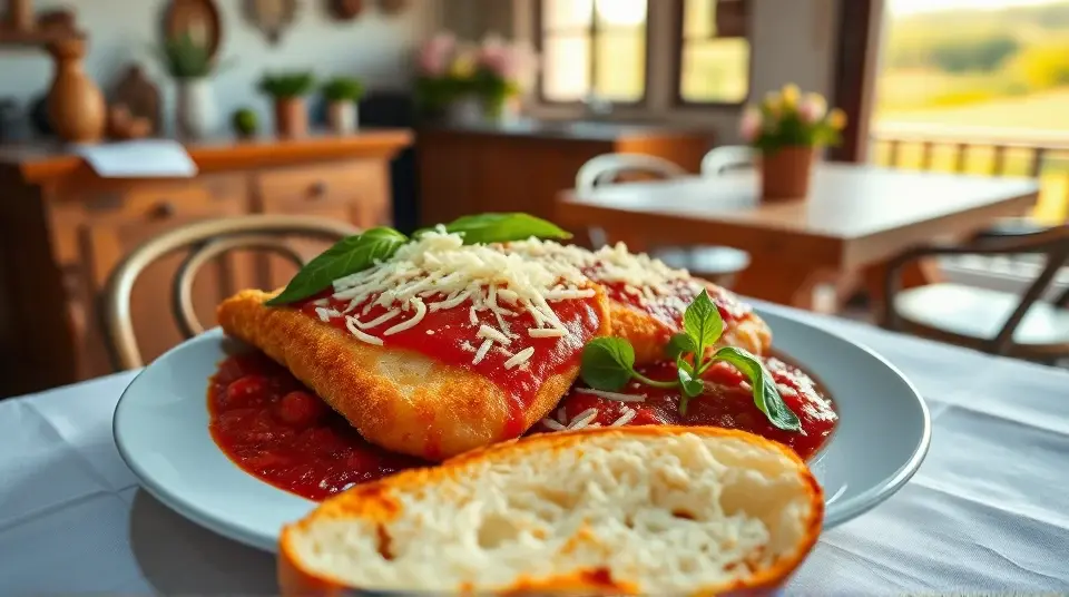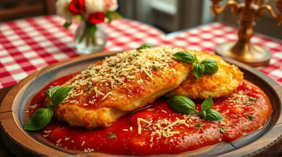 # Valentina's Homemade Chicken Parmigiana 🍽️🍗 This classic Italian-American dish features tender chicken breasts, crispy breadcrumbs, and a luscious marinara topped with gooey melted cheese. It’s comfort food at its finest and perfect for a family dinner or a romantic evening! Pair it with a side of spaghetti or a fresh salad for a complete meal. 🌿🍝 ## Ingredients ### For the Chicken - 2 large chicken breasts, boneless and skinless - Salt and pepper, to taste - 1 cup all-purpose flour - 2 large eggs - 1 cup breadcrumbs (preferably Italian-style) - 1/2 cup grated Parmesan cheese - 1 teaspoon garlic powder - 1 teaspoon dried oregano - Olive oil, for frying ### For the Sauce - 2 cups marinara sauce (store-bought or homemade) - 1 teaspoon red pepper flakes (optional, for a kick) - Fresh basil leaves, for garnish ### For Topping - 1 1/2 cups shredded mozzarella cheese - 1/2 cup grated Parmesan cheese ## Instructions ### Preparations 1. **Preheat the Oven**: Preheat your oven to 400°F (200°C). 2. **Prepare Chicken**: Slice each chicken breast in half horizontally to create thinner cutlets. Place them between sheets of plastic wrap and pound them gently with a meat mallet until about 1/2-inch thick. Season both sides with salt and pepper. ### Breading and Frying 3. **Breading Station**: Set up a breading station: - Place flour in one shallow dish. - In a second dish, whisk the eggs. - In a third dish, mix together the breadcrumbs, Parmesan cheese, garlic powder, oregano, and a pinch of salt. 4. **Coat the Chicken**: Dredge each chicken cutlet in flour, shaking off excess. Dip into the egg, then coat thoroughly in the breadcrumb mixture. 5. **Fry the Chicken**: In a large skillet, heat about 1/4 inch of olive oil over medium-high heat. Add the breaded cutlets in batches, ensuring not to overcrowd the pan. Fry for about 3-4 minutes on each side, or until golden brown. Transfer to a paper towel-lined plate to drain excess oil. ### Assembling the Dish 6. **Layer the Chicken**: In a baking dish, spread half of the marinara sauce on the bottom. Place the fried chicken cutlets on top of the sauce. Generously spoon more marinara sauce over each cutlet. 7. **Add Cheese**: Sprinkle shredded mozzarella and grated Parmesan cheese evenly on top of the sauce-covered chicken. 8. **Bake**: Place the assembled dish in the preheated oven and bake for about 20 minutes, or until the cheese is bubbly and golden. ### Serve 9. **Garnish and Enjoy**: Remove from the oven and let it sit for a few minutes. Garnish with fresh basil leaves before serving. Pair with spaghetti, a green salad, or your favorite garlic bread! 🍞🍷 > 🌟 For a twist, try adding a layer of sautéed mushrooms or spinach under the cheese for added flavor and nutrients! ## Variations - **Spicy**: Add crushed red pepper to the breadcrumb mixture for a spicier kick! 🔥 - **Stuffed Chicken**: Place a slice of prosciutto and a spoonful of fresh mozzarella inside each chicken cutlet before breading for a heartier dish. - **Herbed Bread Crumb**: Add fresh herbs like parsley or thyme to the breadcrumb mixture for an aromatic touch. - **Gluten-free**: Substitute regular breadcrumbs with gluten-free breadcrumbs or almond flour for a gluten-free version of this classic dish. Enjoy your delicious homemade Chicken Parmigiana! Buon Appetito! 🍽️❤️name