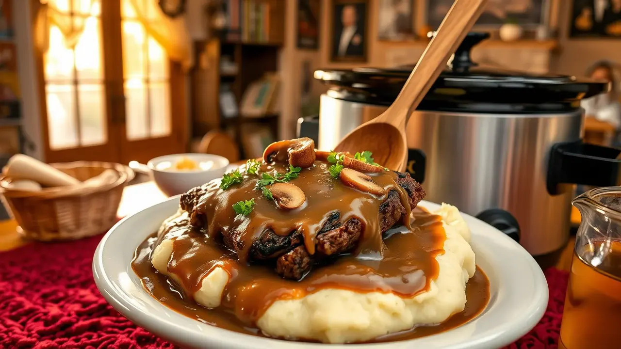 # Slow Cooker Steak and Gravy 🍖🥣 This hearty and comforting dish is perfect for busy weeknights or cozy Sunday dinners. The steak becomes melt-in-your-mouth tender as it cooks slowly in rich, savory gravy. Pair it with mashed potatoes or rice to soak up all that delicious sauce! ## Ingredients ### For the steak and gravy - 2 lbs of beef chuck roast, cut into 2-inch pieces - 1 cup of beef broth - 1 packet of onion soup mix - 1 cup of sliced mushrooms (optional) - 1 medium onion, chopped - 3 cloves of garlic, minced - 2 tablespoons of soy sauce - 1 tablespoon of Worcestershire sauce - 1 teaspoon of dried thyme - Salt and pepper to taste ### For thickening the gravy (optional) - 2 tablespoons of cornstarch - 2 tablespoons of cold water ## Instructions 1. **Prep the meat**: Season the beef chunks with salt and pepper. If you want a nice sear, you can brown the meat in a skillet over medium-high heat for 5-7 minutes before adding it to the slow cooker. This step is optional but adds depth of flavor. 2. **Layer the ingredients**: Place the chopped onion and minced garlic at the bottom of the slow cooker. Add the seasoned beef on top, followed by the mushrooms (if using). 3. **Add the liquids**: In a separate bowl, mix together the beef broth, onion soup mix, soy sauce, Worcestershire sauce, and thyme. Pour this mixture over the beef and onions in the slow cooker. 4. **Slow cook**: Cover and cook on low for 6-8 hours, or on high for 3-4 hours, until the beef is tender and easily shredded. > ⏳ Cooking times can vary based on the slow cooker model. Keep an eye on it towards the end of the cooking time to avoid overcooking. 5. **Thicken the gravy**: If you prefer a thicker gravy, mix the cornstarch and cold water in a small bowl to create a slurry. About 30 minutes before serving, stir the mixture into the slow cooker and cook on high for an additional 30 minutes. 6. **Serve**: Use a slotted spoon to serve the steak and gravy over mashed potatoes, rice, or egg noodles. > 🍚 For a comforting side, mashed potatoes are a classic choice! Simply boil peeled potatoes, mash them with butter, cream, and a pinch of salt, and you’ve got a perfect companion for the rich gravy! ## Variations - **Vegetable Add-Ins**: Feel free to toss in carrots, peas, or green beans during the last hour of cooking for a complete meal packed with veggies. 🥕🥦 - **Spicy Twist**: Add a teaspoon of red pepper flakes or a dash of hot sauce to the gravy for a kick of heat! 🌶️ - **Beer Version**: Substitute half of the beef broth with a dark beer (like stout) for a unique flavor profile and even richer gravy. 🍺 - **Low and Slow**: For those who love the depth of flavor that comes from cooking longer, try low for 10-12 hours for an ultra-tender steak. Enjoy this savory treat with friends and family, and watch as they savor every last bite! 🍽️✨name