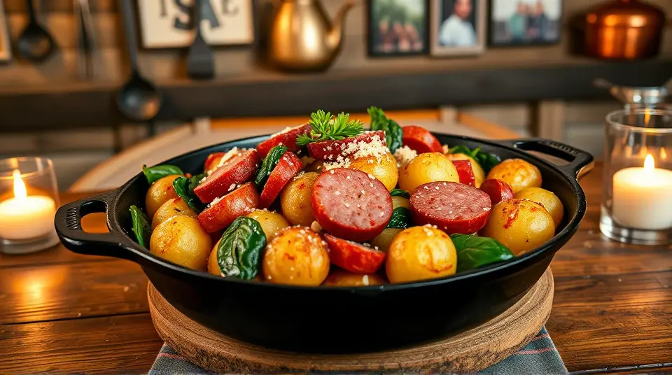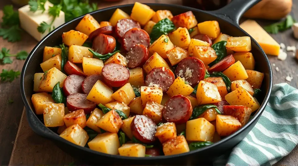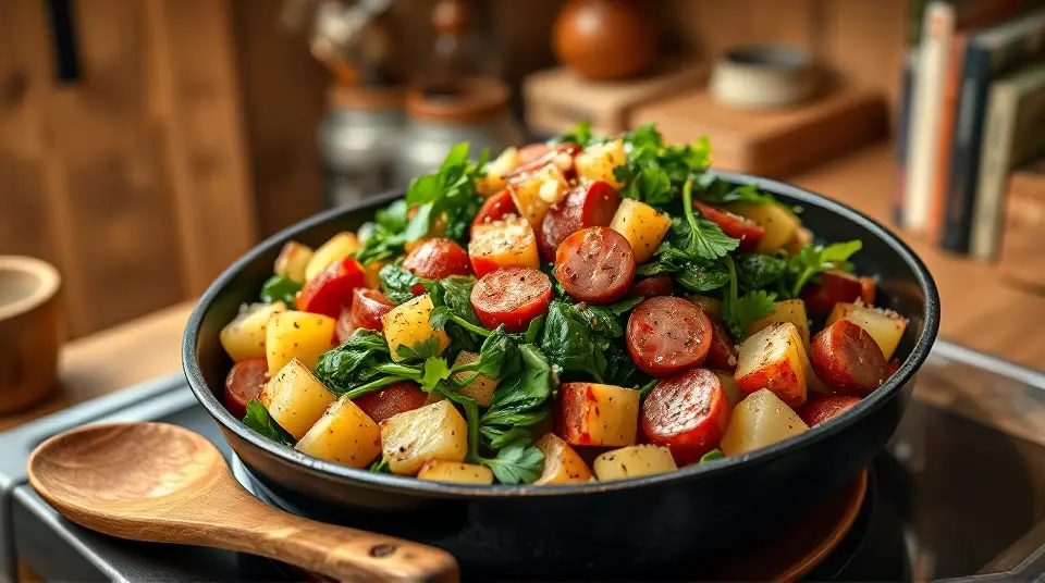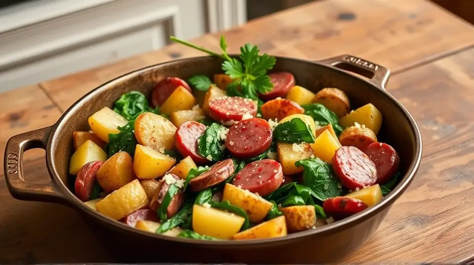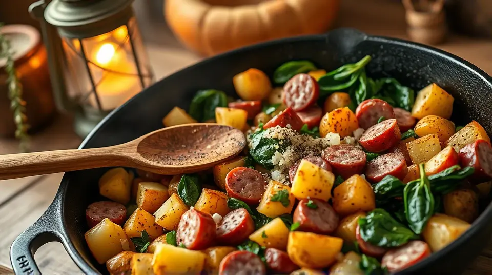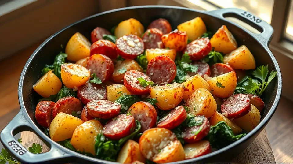 Hearty Potato Spinach Kielbasa Skillet 🥔🌿🥓