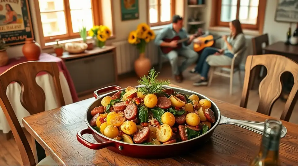 # Hearty Potato Spinach Kielbasa Skillet 🥔🌿🥓 This delightful recipe combines crispy potatoes, savory kielbasa, and fresh spinach for a nourishing meal that's both satisfying and easy to prepare. The medley of flavors and textures makes it perfect for a cozy dinner any day of the week. Plus, it's a one-pan wonder, reducing cleanup time so you can spend more time enjoying your delicious creation! 🍽️✨ ## Ingredients ### For the skillet - 4 medium-sized russet potatoes, diced - 1 package (12 oz) of kielbasa or smoked sausage, sliced - 4 cups of fresh spinach, roughly chopped - 1 medium onion, diced - 3 cloves of garlic, minced - 2 tablespoons of olive oil - 1 teaspoon of paprika - 1/2 teaspoon of black pepper - 1/2 teaspoon of salt - 1/4 teaspoon of red pepper flakes (optional, for some heat) ### For garnish - Fresh parsley, chopped - Grated Parmesan cheese (optional) ## Instructions 1. **Prep the potatoes**: In a large skillet, heat 1 tablespoon of olive oil over medium heat. Add the diced potatoes, paprika, salt, and black pepper. Cook for about 10-12 minutes, stirring occasionally, until the potatoes are golden brown and fork-tender. > 🔥 Make sure to give the potatoes enough space in the pan to brown nicely! If the pan gets too crowded, consider cooking them in batches. 2. **Add the kielbasa**: Push the potatoes to one side of the skillet, increase the heat slightly, and add the remaining tablespoon of olive oil. Add the sliced kielbasa to the skillet and cook for 5-7 minutes until it’s nicely browned and heated through. 3. **Incorporate the vegetables**: Stir in the diced onion and minced garlic, cooking for an additional 2-3 minutes until the onion is translucent. Then, add the chopped spinach and mix everything together until the spinach is wilted. > 🥬 Feel free to toss in other veggies like bell peppers or zucchini for extra nutrition and flavor! 4. **Finish it off**: Sprinkle red pepper flakes if desired, and adjust seasoning to taste. Let everything simmer together for a couple of minutes to blend the flavors. 5. **Serve & enjoy**: Garnish with fresh parsley and a sprinkle of grated Parmesan cheese, if using. Serve hot right out of the skillet for a rustic touch! > 🥂 This dish pairs wonderfully with a crisp salad or crusty bread to soak up any remaining delicious juices! ## Variations - **Gluten-free**: Ensure that your kielbasa is gluten-free, and you’re good to go! 🥳 - **Vegan**: Substitute the kielbasa with a plant-based sausage and replace Parmesan cheese with nutritional yeast for a cheesy flavor. - **Herb-infused**: Add a teaspoon of dried thyme or rosemary for a fragrant twist. - **Comfort food**: Top with a fried egg for added heartiness! 🍳 Enjoy this fulfilling skillet of goodness, and let the flavors take you on a delicious journey!name