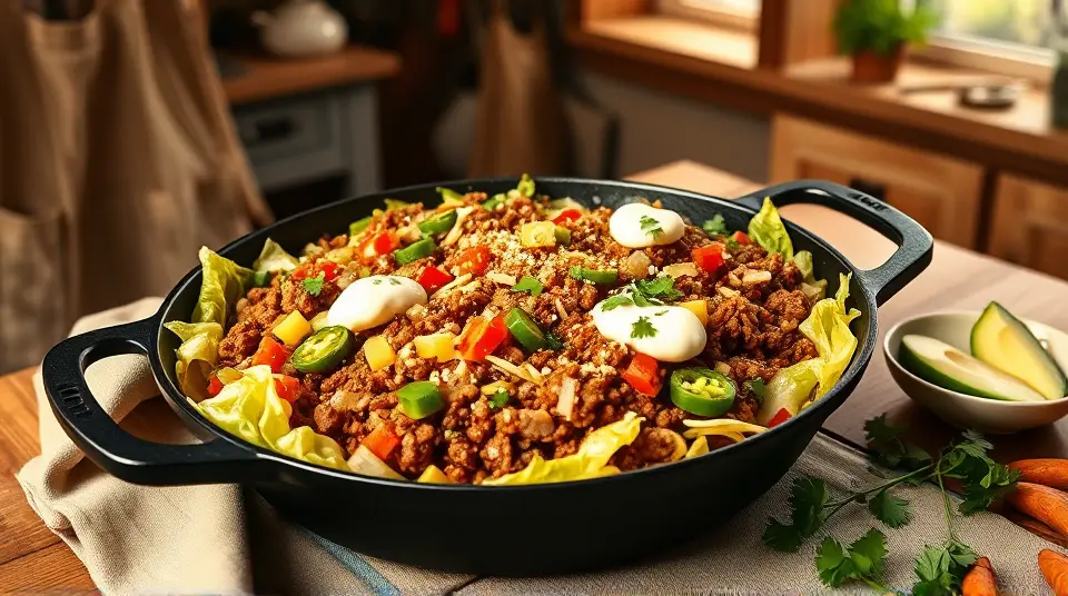 This scrumptious Low Carb Taco Cabbage Skillet is a flavorful and satisfying dish that brings the essence of tacos right to your stovetop—without the carbs! Packed with seasoned ground meat, colorful veggies, and crisp cabbage, this skillet meal is quick to prepare and perfect for busy weeknights. Serve it with your favorite toppings for a truly customizable experience!