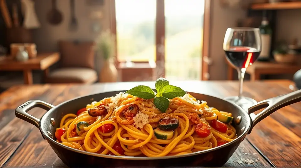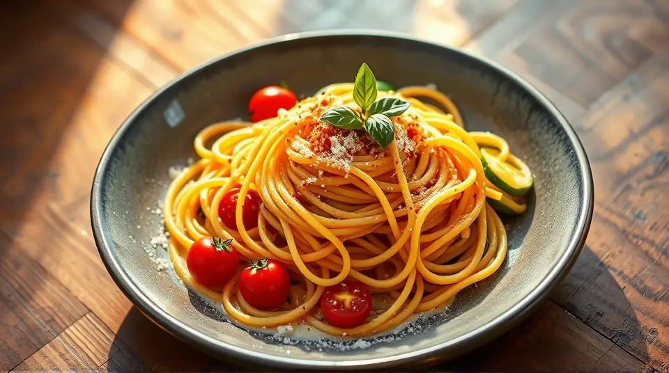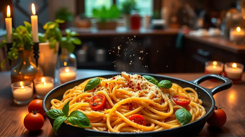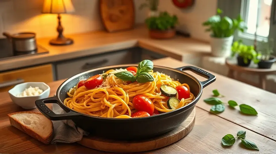 # 20 Minute Skillet Pasta 🍝⏱️ This quick and flavorful skillet pasta dish is perfect for busy weeknights when you need something delicious in a hurry! With fresh veggies, aromatic garlic, and a hint of spice, this pasta will please your family or impress last-minute guests. Plus, it’s a one-pan wonder, making cleanup a breeze! 🎉 ## Ingredients ### For the pasta - 8 oz (225 g) spaghetti or any pasta of choice - 2 tbsp olive oil - 1 medium onion, diced - 3 cloves garlic, minced - 1 bell pepper, diced (any color) - 1 zucchini, diced - 1 cup cherry tomatoes, halved - 1 tsp red pepper flakes (optional) ### For the sauce - 1 cup vegetable broth (or chicken broth) - 1/2 cup heavy cream (or coconut milk for a dairy-free option) - 1/2 cup grated Parmesan cheese (or nutritional yeast for a vegan option) - Salt and pepper to taste - Fresh basil for garnish ## Instructions 1. **Cook the Pasta**: In a large skillet, bring water to a boil. Cook the spaghetti according to package instructions until al dente. Reserve 1/2 cup of pasta water, then drain the pasta and set it aside. 2. **Sauté the Veggies**: In the same skillet, heat olive oil over medium heat. Add diced onion and sauté for 2-3 minutes until translucent. Then add minced garlic and red pepper flakes, and cook for an additional 1 minute until fragrant. 3. **Add More Veggies**: Toss in the bell pepper, zucchini, and cherry tomatoes. Sauté for about 5-7 minutes until the veggies are tender and slightly charred. 4. **Make the Sauce**: Pour in the vegetable broth and bring to a simmer. Stir in the heavy cream and Parmesan cheese, mixing until combined. Season with salt and pepper to taste. 5. **Combine**: Add the cooked pasta to the skillet, tossing everything together. If the mixture seems dry, gradually add some reserved pasta water until you reach your desired consistency. 6. **Serve**: Garnish your skillet pasta with fresh basil and additional Parmesan cheese if desired. Serve immediately and enjoy your delicious creation! 🍽️ > 🍅 Feel free to customize this dish by adding your choice of protein, such as shrimp, chicken, or chickpeas, for a heartier meal. ## Variations - **Gluten-free**: Substitute regular pasta with gluten-free pasta. Cooking times may vary, so check package instructions. - **Dairy-free**: Use unsweetened almond milk or cashew cream instead of heavy cream, and opt for vegan cheese instead of Parmesan. - **Spicier**: Increase red pepper flakes or add a sliced jalapeño for extra heat! - **Pasta Shape**: Swap out spaghetti for penne, fusilli, or any pasta shape you have on hand. Each shape offers its own unique texture! Enjoy your delicious and easy 20-minute skillet pasta that brings a burst of flavor to your weeknight dinners! 🌟name