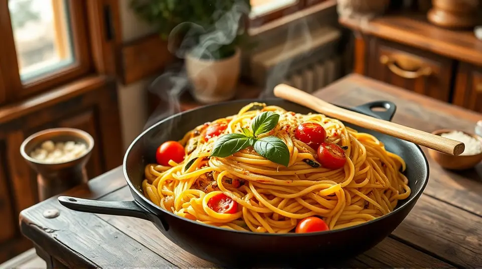 This quick and flavorful skillet pasta dish is perfect for busy weeknights when you need something delicious in a hurry! With fresh veggies, aromatic garlic, and a hint of spice, this pasta will please your family or impress last-minute guests. Plus, it’s a one-pan wonder, making cleanup a breeze! 🎉