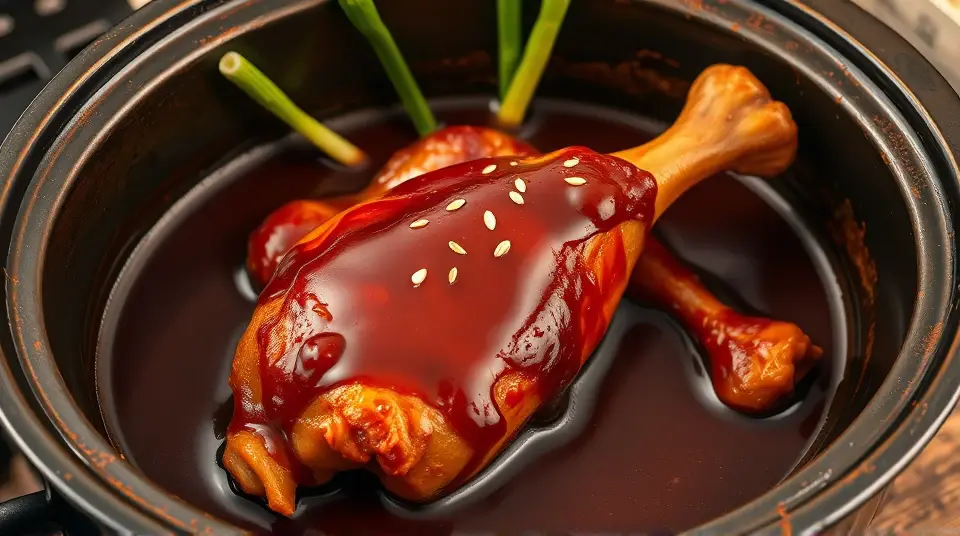 # Three Ingredient Slow Cooker Drumsticks 🍗✨ This easy and flavorful recipe gives you mouthwatering drumsticks with minimal effort! Perfect for busy weeknights or casual gatherings, these flavorful chicken drumsticks cook slowly to achieve tender, fall-off-the-bone meat. You can even pair them with your favorite dipping sauce for an extra kick! ## Ingredients ### For the drumsticks - 2 pounds of chicken drumsticks - 1 cup of barbecue sauce (your favorite brand) - 1/4 cup of soy sauce ## Instructions - Place the chicken drumsticks into the slow cooker. > 🥄 Make sure the drumsticks are arranged in a single layer for even cooking. If your slow cooker is small, consider cooking them in batches. - In a separate bowl, mix the barbecue sauce and soy sauce together until well combined. Pour this mixture over the chicken drumsticks, ensuring they are all well-coated. - Cover the slow cooker and set it on low for 6-7 hours or high for 3-4 hours until the drumsticks are cooked through and tender. > 🔥 You can check the internal temperature of the chicken with a meat thermometer; it should reach 165°F (74°C) for safety. - Once cooked, carefully remove the drumsticks and serve hot. You can drizzle some extra sauce from the slow cooker over the top for added flavor. > 🌶️ For an extra touch, consider garnishing with chopped green onions or sesame seeds before serving! ## Variations - **Spicy Kick**: Add a tablespoon of hot sauce to the barbecue and soy sauce mixture for a spicy twist. 🔥 - **Honey Glaze**: Substitute half of the barbecue sauce with honey for a sweet and sticky glaze. 🍯 - **Herb Infusion**: Add a dash of garlic powder, onion powder, or your favorite herbs to the sauce mixture for extra depth of flavor. - **Low-sodium**: Use a low-sodium soy sauce for a healthier option, and reduce the amount of barbecue sauce to control the sugar content. Enjoy your perfectly cooked drumsticks with sides like rice, coleslaw, or roasted vegetables! 🍽️name