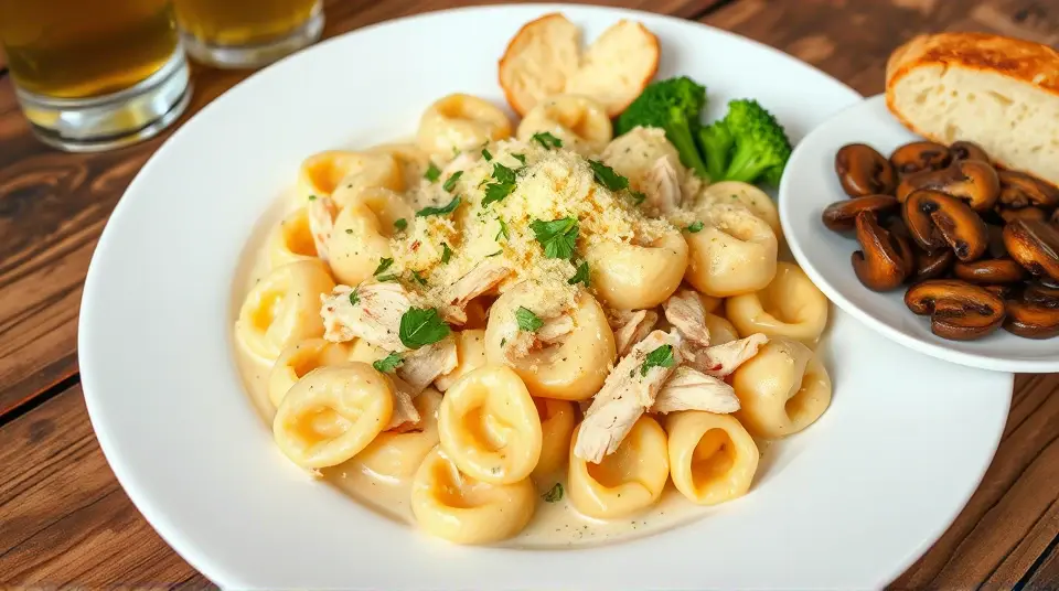 - Once ready, serve the Chicken Alfredo Tortellini hot, garnished with fresh parsley.
