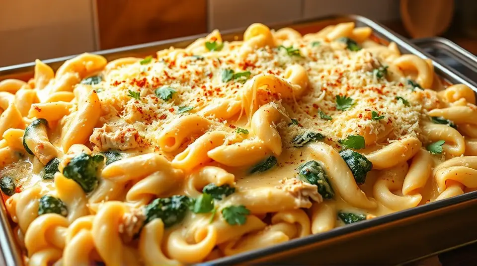 # Creamy Chicken Alfredo Baked Ziti 🍝🍗 This delicious Chicken Alfredo Baked Ziti is a creamy, cheesy delight that’s perfect for family dinners or gatherings with friends. The tender pasta, rich Alfredo sauce, grilled chicken, and a melty topping make it a comforting dish that everyone will love! Serve it with a side of garlic bread and a fresh salad for a complete meal. 🌿🥗 ## Ingredients ### For the baked ziti - 12 oz ziti pasta - 2 cups cooked chicken, shredded or diced - 3 cups Alfredo sauce (store-bought or homemade) - 1 cup ricotta cheese - 1 1/2 cups mozzarella cheese, shredded - 1/2 cup Parmesan cheese, grated - 2 cups fresh spinach (optional) - Salt and pepper to taste - 1 teaspoon Italian seasoning - 1 tablespoon olive oil ### For the topping - 1/2 cup mozzarella cheese, shredded - 1/4 cup Parmesan cheese, grated - Fresh parsley, chopped (for garnish) ## Instructions 1. **Preheat the oven** to 375°F (190°C). 2. **Cook the pasta**: Bring a large pot of salted water to a boil. Add the ziti and cook according to package instructions until al dente. Drain and set aside. 3. **Combine the ingredients**: In a large mixing bowl, combine the cooked ziti, shredded chicken, Alfredo sauce, ricotta cheese, 1 1/2 cups of mozzarella cheese, Italian seasoning, and fresh spinach (if using). Season with salt and pepper to taste. Stir until well mixed. > 🍗 Grilled chicken works best for this dish, but you can also use rotisserie chicken for a quicker option. 4. **Assemble the dish**: Transfer the ziti mixture to a greased 9x13-inch baking dish, spreading it evenly. Sprinkle the remaining mozzarella and Parmesan cheese on top. 5. **Bake** in the preheated oven for about 25-30 minutes, or until the cheese is bubbly and golden brown. 6. **Garnish and serve**: Once out of the oven, let it cool for a few minutes before serving. Garnish with chopped parsley for a fresh touch! > 🌟 For added flavor, you can sprinkle some red pepper flakes on top before serving for a little kick! ## Variations - **Vegetarian**: Skip the chicken and add extra veggies like bell peppers, zucchini, and mushrooms for a hearty vegetarian dish! 🥬🍄 - **Spicy**: Incorporate some diced jalapeños or spicy sausage into the mixture for a fiery version! - **Whole Wheat**: Use whole wheat ziti for a healthier twist. It’ll add more fiber and make the dish a bit nutty in flavor. - **Creamy Pesto**: Substitute part of the Alfredo sauce with basil pesto for a burst of fresh flavor! Enjoy this comforting Chicken Alfredo Baked Ziti—it’s creamy, cheesy, and simply irresistible! 🍽️❤️name