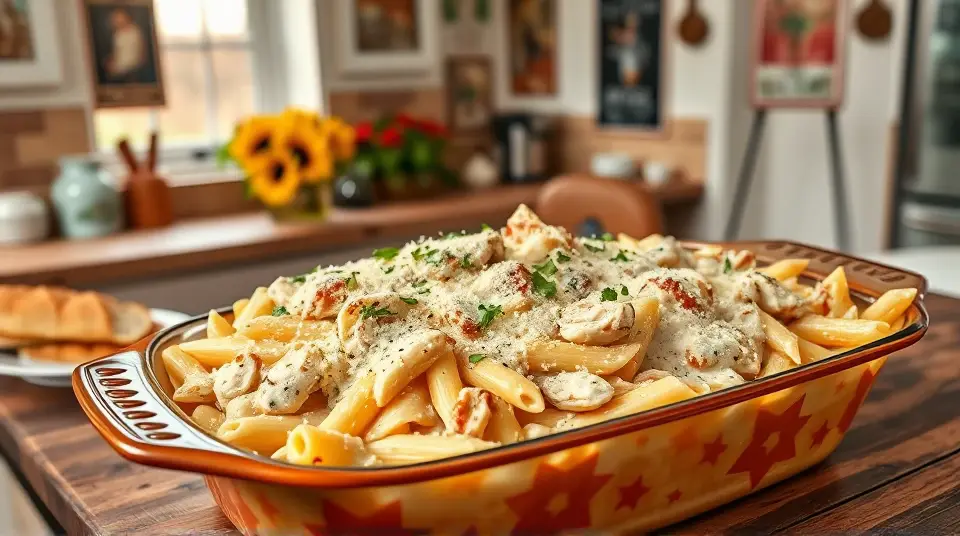 Creamy Chicken Alfredo Baked Ziti 🍝🍗