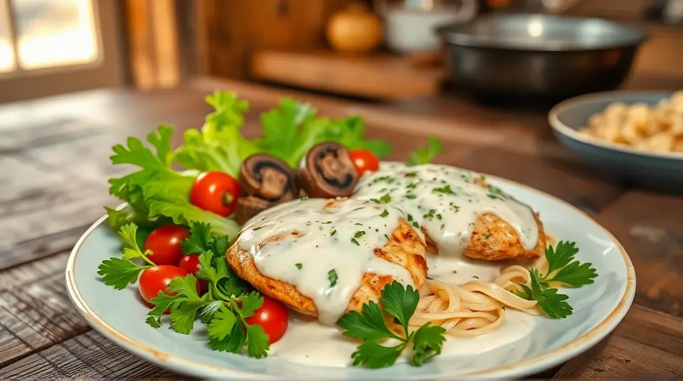 This delightful dish brings together tender chicken and earthy mushrooms in a creamy Parmesan sauce. It’s a comforting meal that’s perfect for weeknight dinners or special occasions. Serve it over pasta or alongside a fresh salad for a complete meal!