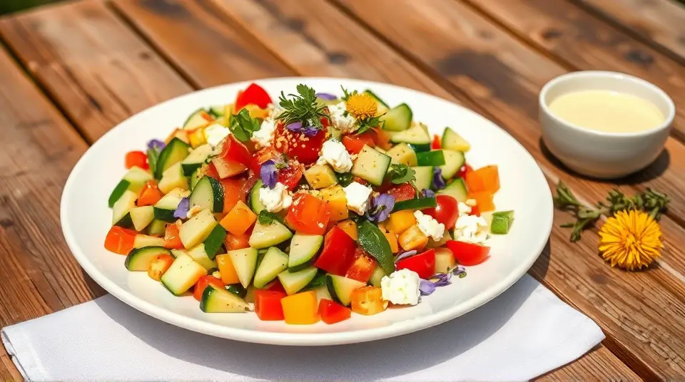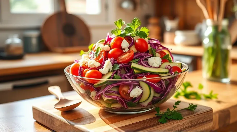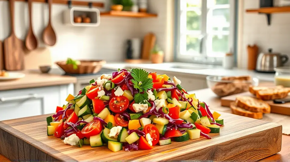# Ultimate Chopped Salad with Zucchini and Green Onion 🥗🥒 This vibrant and refreshing chopped salad is the perfect side dish for any meal or a light lunch on its own. Loaded with crunchy vegetables and a zesty dressing, it's an explosion of flavors and textures. The addition of zucchini and green onion gives it a unique twist that is sure to impress your family and friends! ## Ingredients ### For the salad - 2 medium zucchinis, diced - 1 cup of cherry tomatoes, halved - 1 bell pepper (any color), diced - 1 cucumber, peeled and diced - 1 cup of red cabbage, finely shredded - 1/2 cup of green onions, sliced - 1/4 cup of fresh parsley, chopped - 1/2 cup of feta cheese, crumbled (optional) - Salt and pepper to taste ### For the dressing - 1/4 cup of olive oil - 2 tablespoons of apple cider vinegar - 1 tablespoon of Dijon mustard - 1 tablespoon of honey or agave syrup - 1 clove of garlic, minced - Salt and pepper to taste ## Instructions - Start by preparing the dressing. In a small bowl, whisk together the olive oil, apple cider vinegar, Dijon mustard, honey, minced garlic, salt, and pepper until well combined. > 🥄 A quick tip: For an extra kick, consider adding a teaspoon of freshly squeezed lemon juice or a pinch of chili flakes to the dressing! - In a large mixing bowl, combine the diced zucchinis, cherry tomatoes, bell pepper, cucumber, red cabbage, green onions, and parsley. Toss until all the vegetables are evenly mixed. - Drizzle the dressing over the chopped vegetables and toss well to coat everything in that zesty goodness. - If using, sprinkle the crumbled feta cheese on top and gently mix it in. Season with additional salt and pepper to taste. - Serve immediately or let it chill in the fridge for about 20 minutes to allow flavors to meld. > 🧊 If you have leftovers, store them in an airtight container in the refrigerator. The salad is best enjoyed within 2 days, but the dressing may soften the veggies a bit over time. ## Variations - **Vegan**: Simply omit the feta cheese or use a plant-based alternative to keep it dairy-free. - **Grain-Loaded**: Add cooked quinoa or farro for an added boost of protein and fiber. - **Herb Blend**: Feel free to swap out the parsley for other fresh herbs like basil, mint, or cilantro for a different flavor profile. - **Add Protein**: Toss in some grilled chicken, shrimp, or chickpeas for a heartier meal. Enjoy this delightful Ultimate Chopped Salad as a refreshing companion to your main dishes, or snack on it all day long for a burst of health and flavor! 🥗✨name