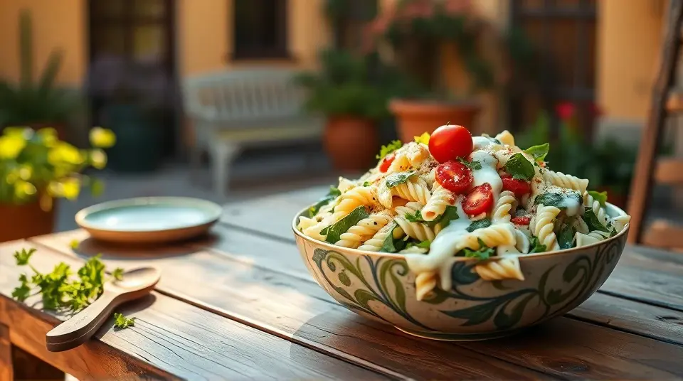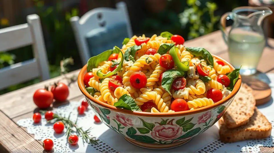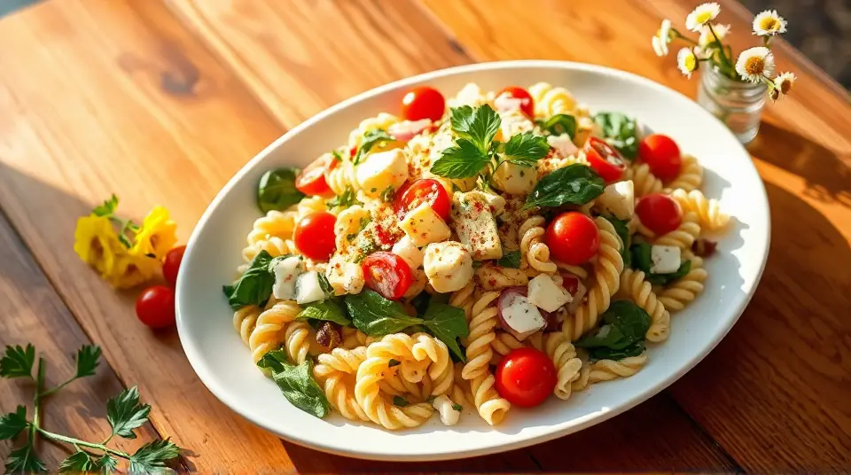 # Spinach Artichoke Pasta Salad with Green Bell Pepper 🥗🍝 This refreshing Spinach Artichoke Pasta Salad with Green Bell Pepper is a delightful twist on classic flavors! With its creamy dressing, crunchy veggies, and the zing of artichokes, this salad is perfect for picnics, potlucks, or simply a light weeknight dinner. The combination of textures and tastes will make your taste buds dance with joy! 🌟 ## Ingredients ### For the salad - 8 oz rotini or fusilli pasta - 1 cup fresh spinach, chopped - 1 cup canned artichoke hearts, drained and roughly chopped - 1 green bell pepper, diced - 1/2 cup cherry tomatoes, halved - 1/4 cup red onion, finely chopped ### For the dressing - 1/3 cup mayonnaise - 1/4 cup Greek yogurt (or sour cream) - 1 tablespoon Dijon mustard - 2 tablespoons lemon juice - 1/2 teaspoon garlic powder - Salt and pepper to taste - A pinch of crushed red pepper flakes (optional, for a kick) ## Instructions - Begin by cooking the pasta according to the package instructions. Drain and rinse under cold water to cool it down, then set aside. > 🍝 Rinsing the pasta will prevent it from becoming mushy and helps to stop the cooking process immediately. - In a large mixing bowl, combine the cooked pasta, chopped spinach, artichoke hearts, diced green bell pepper, cherry tomatoes, and red onion. - In a separate bowl, whisk together the mayonnaise, Greek yogurt, Dijon mustard, lemon juice, garlic powder, salt and pepper, and crushed red pepper flakes (if using) until smooth and creamy. > 🥄 Feel free to adjust the seasoning to your taste; you can add more lemon juice for acidity or extra garlic powder for depth. - Pour the dressing over the pasta mixture and gently toss until everything is evenly coated. - Cover the salad and refrigerate for at least 30 minutes to allow the flavors to meld. > ❄️ This salad tastes even better after sitting in the fridge, as the ingredients soak up the delicious dressing. ## Variations - **Whole Wheat or Gluten-free**: Use whole wheat pasta or a gluten-free pasta alternative for a healthier or gluten-free option. Both will work great in this recipe! 🌾 - **Add Protein**: Toss in some grilled chicken, shrimp, or chickpeas for added protein and heartiness. This makes it a fantastic main dish. - **Cheesy Delight**: Stir in some crumbled feta or shredded mozzarella for a creamier texture and an additional layer of flavor. - **Herbaceous Twist**: Add chopped fresh herbs like basil, parsley, or dill for a burst of freshness and color. This Spinach Artichoke Pasta Salad is sure to become a favorite! Enjoy it chilled or at room temperature. Perfect for meal prep or a quick and satisfying side! 😍🍽️name