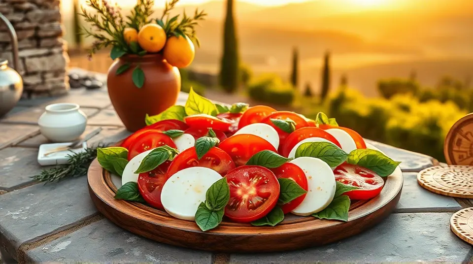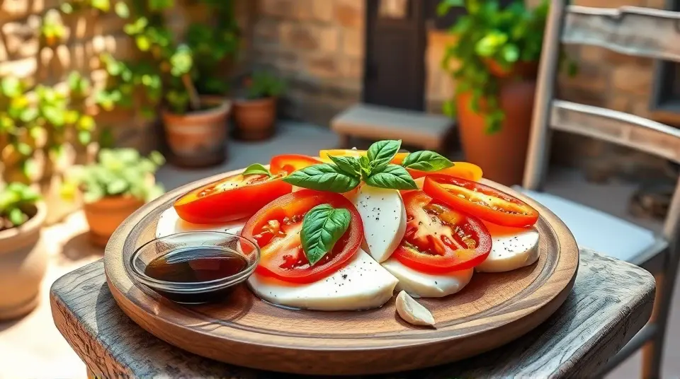 # Caprese Salad with Garlic Balsamic Dressing 🍅🍃 This vibrant and fresh Caprese Salad is a delightful twist on the classic Italian dish, enhanced with a zesty garlic balsamic dressing. Perfect for a summer picnic or a light dinner, the combination of ripe tomatoes, creamy mozzarella, and aromatic basil will transport your taste buds to the Italian countryside. It's a simple yet impressive dish that's sure to be a crowd-pleaser! ## Ingredients ### For the salad - 4 ripe tomatoes (heirloom or vine-ripened, sliced) - 8 oz fresh mozzarella cheese (sliced) - 1 cup fresh basil leaves - Salt and black pepper to taste - Extra virgin olive oil (for drizzling) ### For the garlic balsamic dressing - 1/4 cup balsamic vinegar - 1/2 cup extra virgin olive oil - 2 cloves garlic (minced) - 1 tsp Dijon mustard - 1 tsp honey (or maple syrup for a vegan option) - Salt and pepper to taste ## Instructions 1. **Prepare the dressing:** - In a small bowl, whisk together the balsamic vinegar, minced garlic, Dijon mustard, and honey until well combined. - Slowly drizzle in the olive oil while whisking continuously to create an emulsion. Season with salt and pepper to taste. > 🔪 If you prefer a smoother dressing, you can blend these ingredients in a food processor for about 30 seconds until creamy. 2. **Assemble the salad:** - On a serving platter, alternate layers of sliced tomatoes and mozzarella. Tuck fresh basil leaves between the layers for vibrant color and flavor. - Drizzle the salad with extra virgin olive oil, and season with salt and black pepper. 3. **Dress the salad:** - Just before serving, drizzle the garlic balsamic dressing generously over the salad. > 🥗 For an added kick, allow the salad to sit for about 10 minutes to let the flavors meld together before serving. ## Variations - **Caprese Skewers:** Thread tomatoes, mozzarella balls, and basil leaves onto skewers for a festive presentation. Drizzle with dressing just before serving! 🍢 - **Grilled Version:** Grill the tomato slices and mozzarella until slightly charred and melty. This adds a smoky flavor that pairs beautifully with the dressing. - **Pesto Twist:** Drizzle some basil pesto over the salad for an additional layer of flavor. This is especially delicious in the summer when basil is abundant! 🌱 - **Hearty Addition:** Add sliced avocado or a handful of arugula for a creamy or peppery twist, respectively. This Caprese Salad with Garlic Balsamic Dressing is not only a feast for the eyes but also a burst of flavors that encapsulate the essence of fresh, seasonal ingredients. Enjoy it as a starter or a refreshing side dish! 🍽️✨name