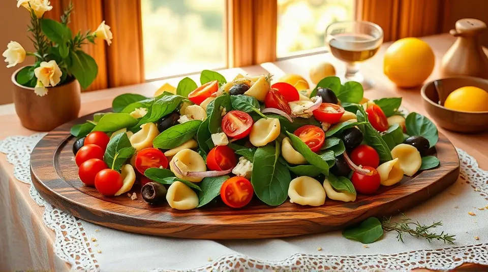# Spinach Tortellini Salad πΏπ This refreshing and hearty salad combines the goodness of spinach with the delightful texture of tortellini, creating a perfect dish for any gathering or a simple family meal. The combination of flavors is brightened by a zesty lemon vinaigrette that will leave your taste buds dancing. Serve it as a main dish or a side, and feel free to add your favorite toppings for a personal touch! ## Ingredients ### For the salad - 12 oz cheese tortellini (fresh or frozen) - 4 cups fresh baby spinach - 1 cup cherry tomatoes, halved - 1/2 cup sliced bell peppers (red or yellow for sweetness) - 1/4 cup red onion, thinly sliced - 1/2 cup Kalamata olives, pitted and halved - 1/4 cup feta cheese, crumbled (optional) ### For the lemon vinaigrette - 1/4 cup olive oil - 2 tablespoons freshly squeezed lemon juice - 1 teaspoon Dijon mustard - 1 clove garlic, minced - Salt and pepper to taste - Zest of 1 lemon (for extra zing!) ## Instructions - Cook the tortellini according to the package instructions. Drain and rinse under cold water to cool. Set aside. > π₯ Rinsing the tortellini stops the cooking process and helps keep the pasta from sticking together. - In a large bowl, combine the spinach, cherry tomatoes, bell peppers, red onion, Kalamata olives, and cooled tortellini. - In a separate small bowl or jar, whisk together the olive oil, lemon juice, Dijon mustard, minced garlic, salt, and pepper. Add the lemon zest and mix well. > π Feel free to adjust the acidity! Add a little more lemon juice if you like it tangier or a drizzle of honey if you prefer it sweeter. - Pour the dressing over the salad and toss gently to combine. - Top with crumbled feta cheese if desired, and serve immediately or chill for 30 minutes for the flavors to meld. ## Variations - **Protein Boost**: Add grilled chicken, shrimp, or chickpeas to make it a complete meal! ππ€ - **Herbaceous Twist**: Toss in some fresh basil, parsley, or dill for an extra layer of flavor. - **Gluten-free**: Use gluten-free tortellini available in stores or substitute with gluten-free pasta. - **Creamy Dreamy**: For a creamy version, add a dollop of Greek yogurt or a drizzle of creamy balsamic dressing. Enjoy this delightful Spinach Tortellini Salad at your next picnic, barbecue, or weekday lunch! π₯β¨name