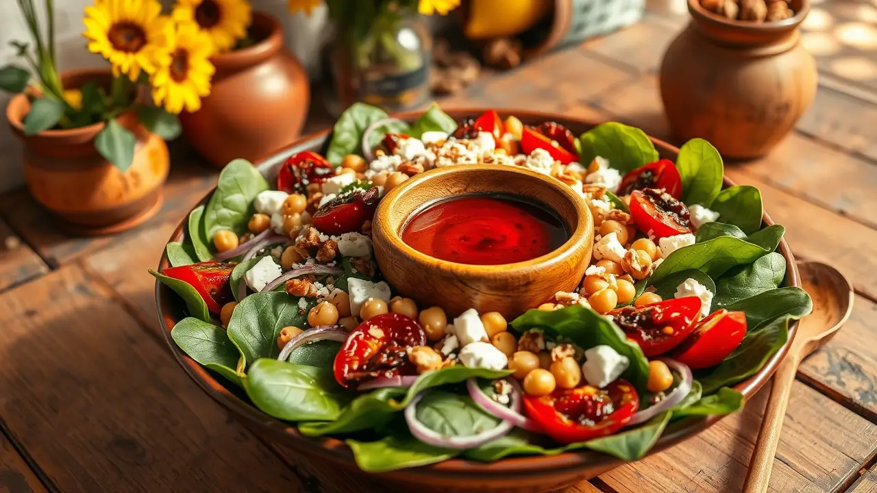 # Sicilian Spinach Salad with Sundried Tomatoes ๐ฅ๐ This vibrant and flavorful salad is inspired by the beautiful flavors of Sicily. It combines fresh spinach with the rich, umami taste of sundried tomatoes, crunchy nuts, and a zesty dressing that brings all the elements together. Itโs perfect as a light lunch or as a refreshing side dish to complement any main course. Enjoy this salad with crusty bread or paired with grilled chicken for a complete meal! ๐๐ ## Ingredients ### For the salad - 6 cups fresh spinach, washed and dried - 1/2 cup sundried tomatoes, chopped - 1/4 cup red onion, thinly sliced - 1/3 cup feta cheese, crumbled - 1/4 cup toasted pine nuts (or walnuts) - 1/2 cup canned chickpeas, drained and rinsed ### For the dressing - 3 tablespoons olive oil - 2 tablespoons balsamic vinegar - 1 tablespoon honey or maple syrup - 1 teaspoon Dijon mustard - Salt and pepper to taste ## Instructions 1. In a large salad bowl, combine the fresh spinach, sundried tomatoes, red onion, feta cheese, toasted pine nuts, and chickpeas. 2. In a separate small bowl or jar, whisk together the olive oil, balsamic vinegar, honey (or maple syrup), Dijon mustard, salt, and pepper until smooth and well combined. 3. Drizzle the dressing over the salad just before serving. Toss gently to combine and ensure all the ingredients are well coated. > ๐ฅ Feel free to let the salad sit for a few minutes before serving. This allows the flavors to meld beautifully, especially if youโre using fresh ingredients. ## Variations - **Add protein**: Grilled chicken, shrimp, or tofu can be added for extra protein, making it a heartier meal. ๐๐ค - **Nut-free**: Omit the pine nuts and replace them with sunflower seeds for a similar crunch without the nuts. ๐ฅ๐ซ - **Herb infusion**: Add fresh herbs like basil or parsley for an extra layer of flavor. You can also mix them into the dressing for a fresh herb vinaigrette! ๐ฟ - **Vegan**: Omit the feta cheese or use a plant-based cheese alternative to keep it dairy-free while still providing a creamy element. > ๐ This salad is perfect for meal prep! Store the salad components and dressing separately to keep them fresh throughout the week. Just toss them together when youโre ready for a wholesome meal. Enjoy this Sicilian delight, and let your taste buds take a trip to Italy! ๐ฎ๐นโค๏ธname